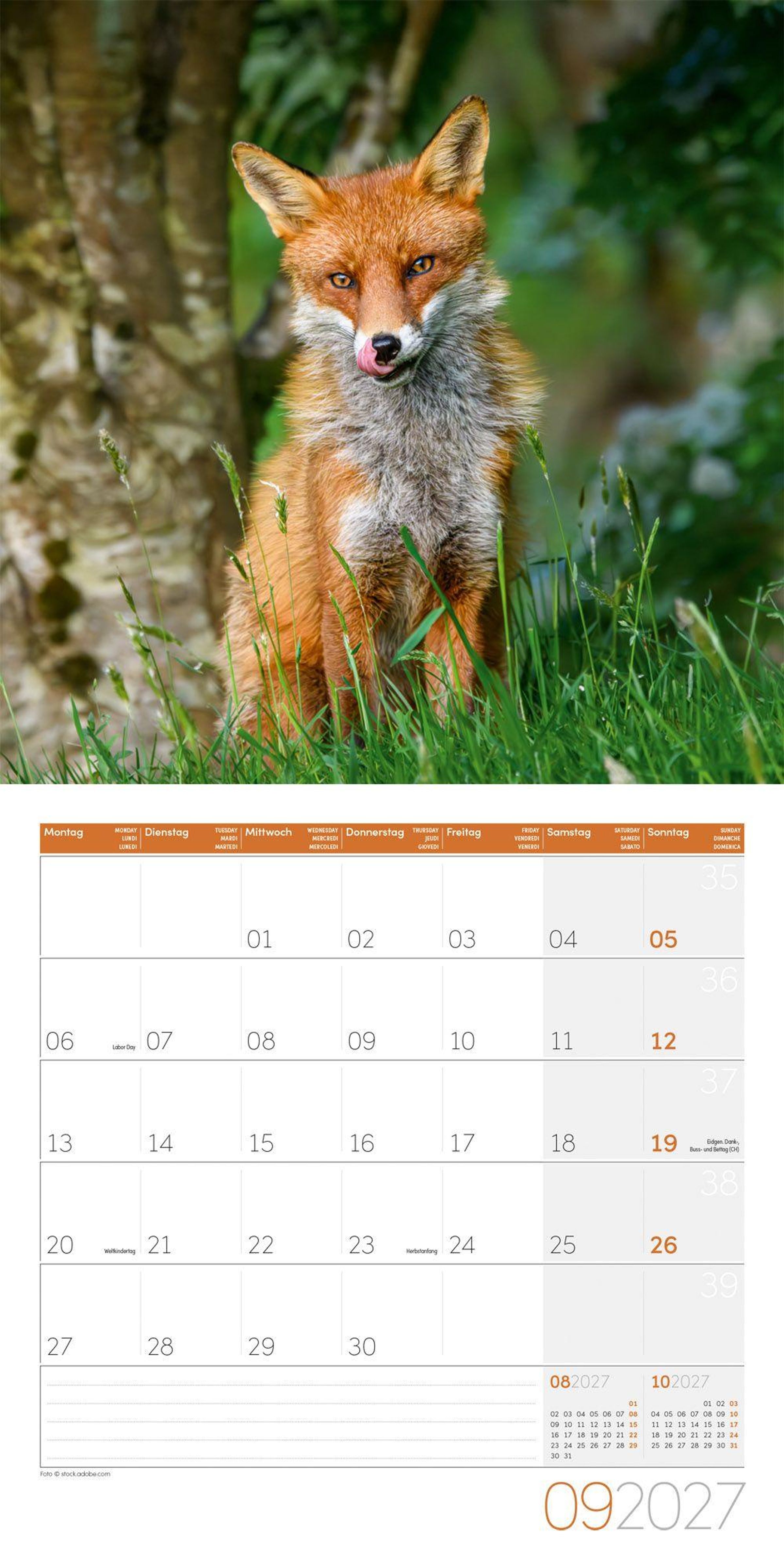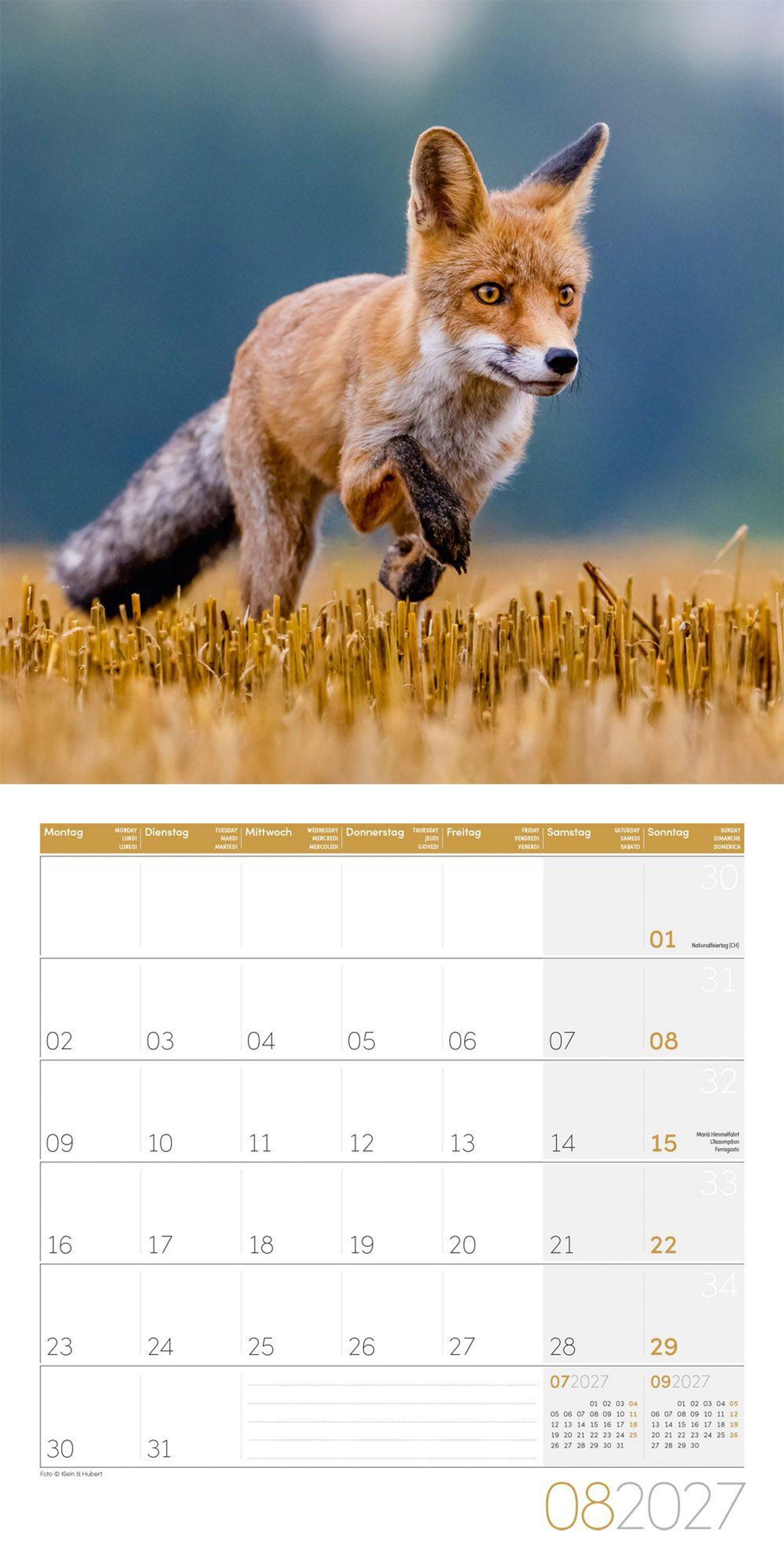 Fuchs-Kalender im schlanken Hochformat: 30x30 cm, (aufgeklappt 30x60 cm)