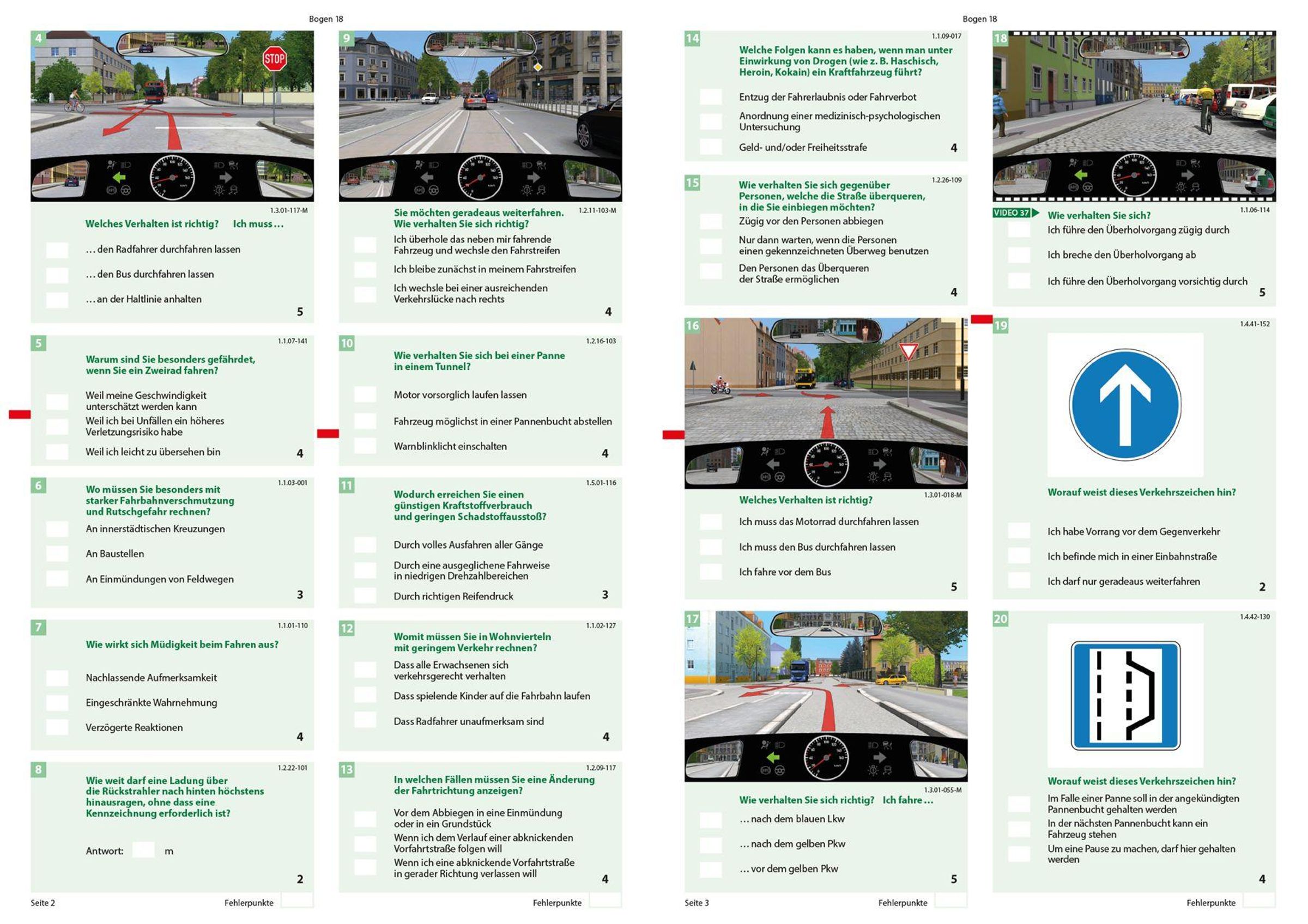 Mit diesen Bögen sind Sie perfekt für die theoretische Führerschein Prüfung vorbereitet