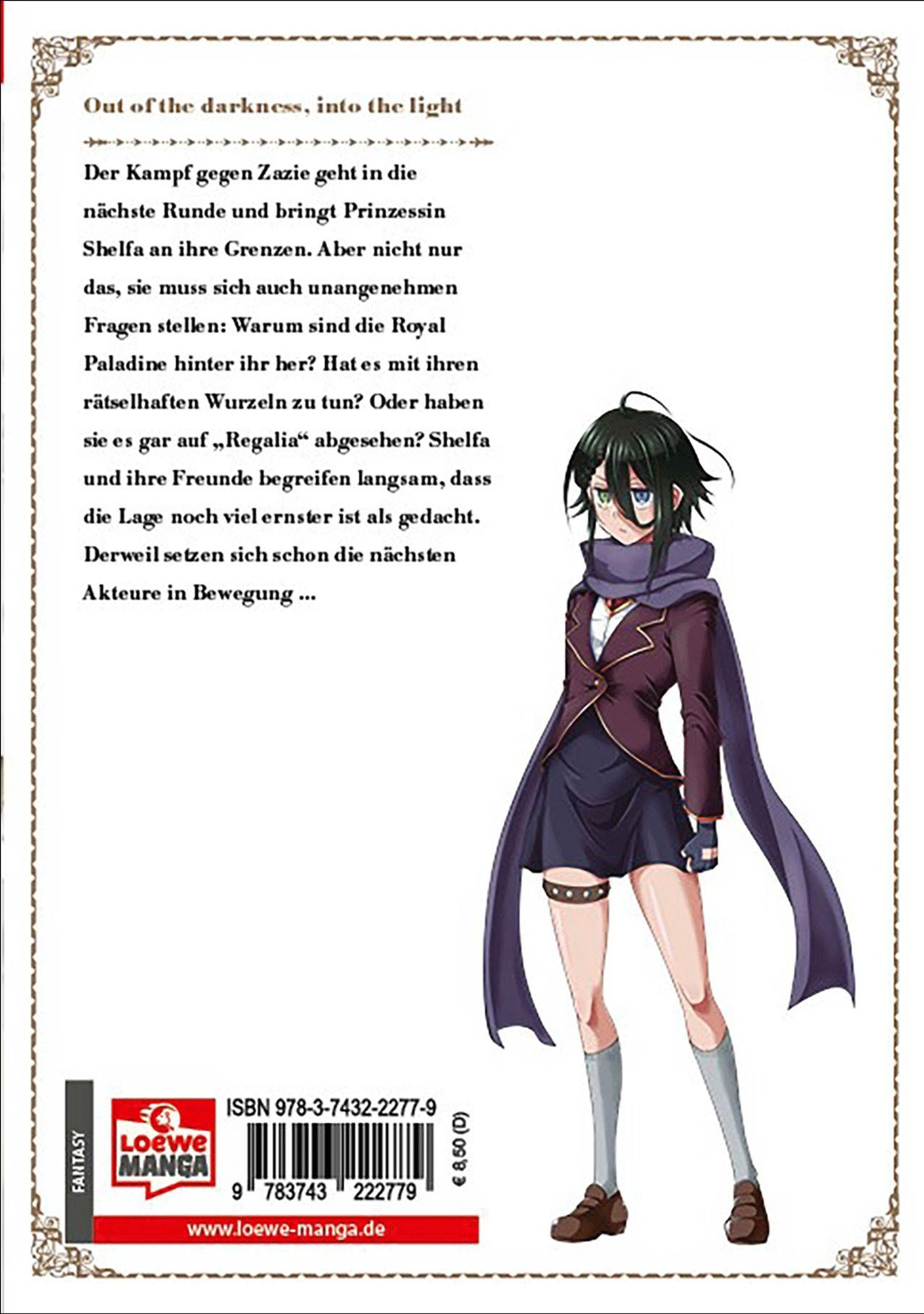 Der Kampf gegen Zazie geht in die nächste Runde und bringt Prinzessin Shelfa an ihre Grenzen. Aber nicht nur das, sie muss sich auch unangenehmen Fragen stellen: Warum sind die Royal Paladine hinter ihr her? Hat es mit ihren rätselhaften Wurzeln zu tun? Oder haben sie es gar auf "Regalia" abgesehen? Shelfa und ihre Freunde begreifen langsam, dass die Lage noch viel ernster ist als gedacht. Derweil setzen sich schon die nächsten Akteure in Bewegung ...