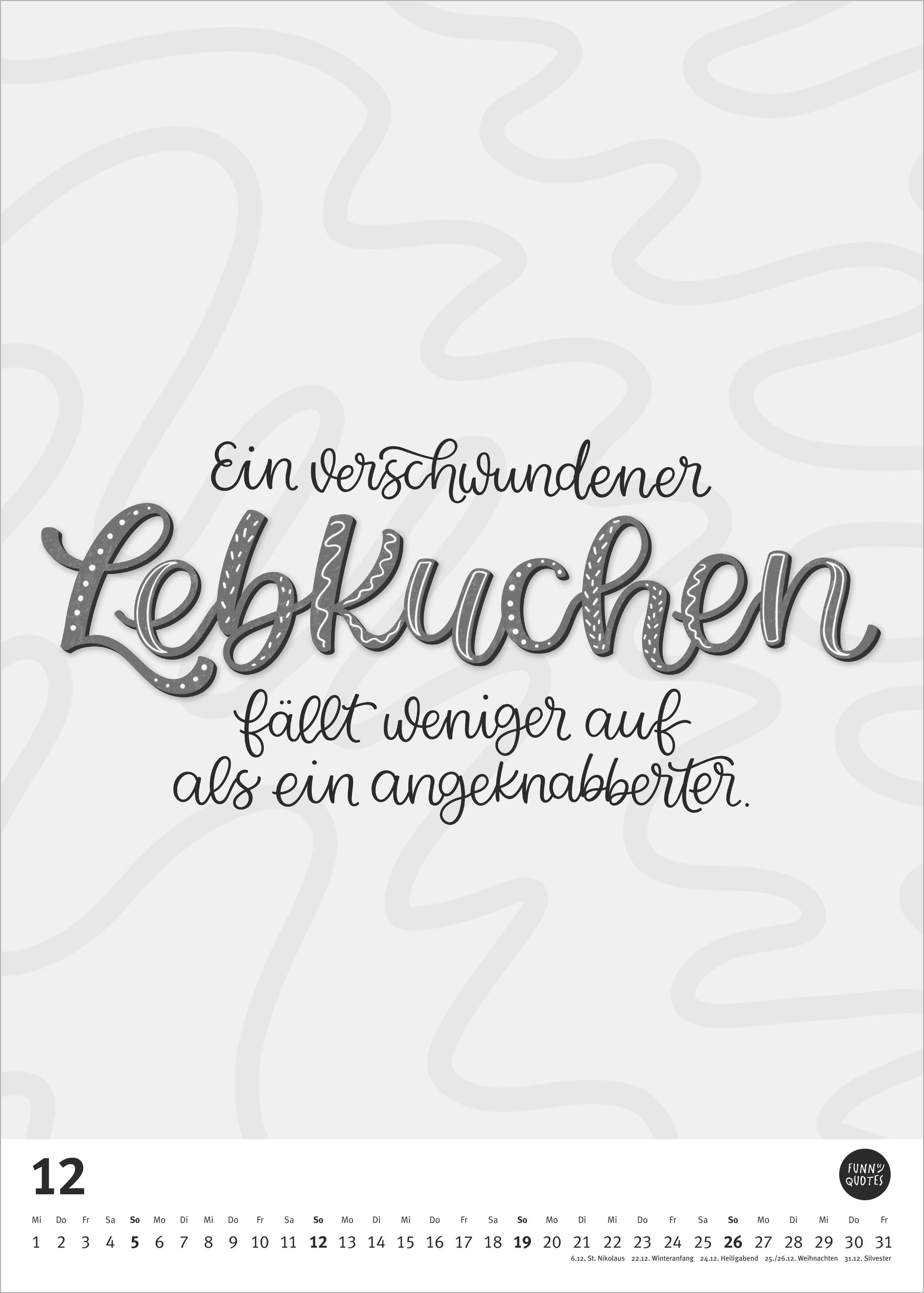 Dieser Wandkalender vereint Humor mit stilvollem Minimalismus -- genau richtig für alle, die sich Jahr für Jahr ein Schmunzeln gönnen möchten.