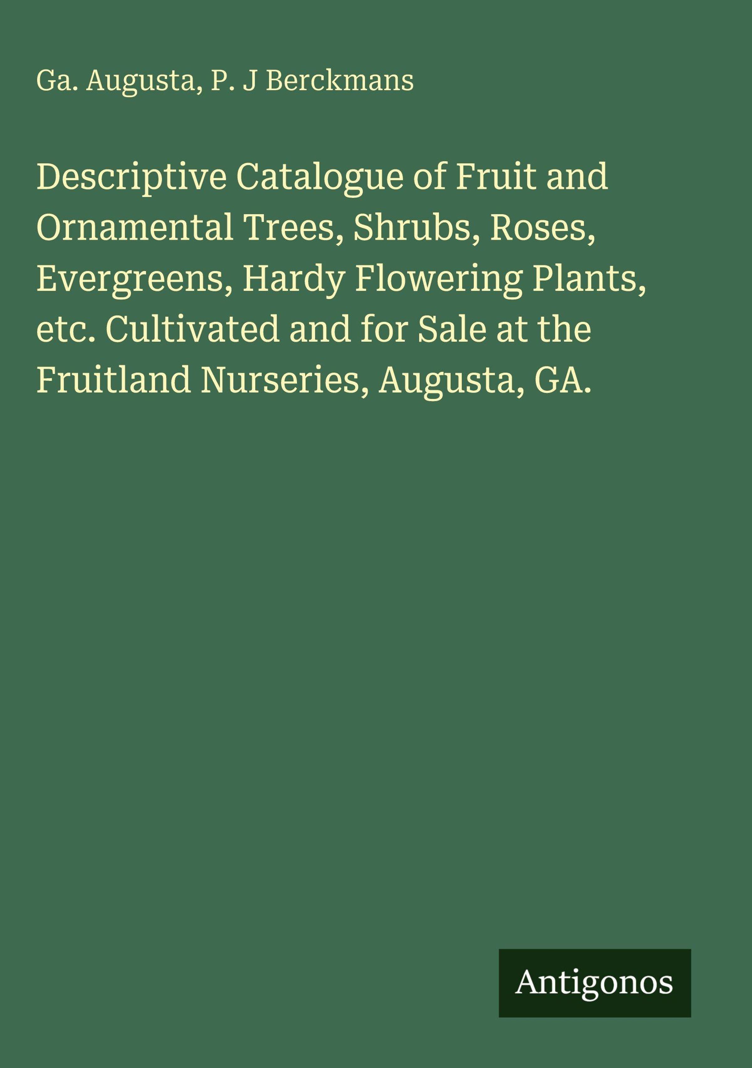 Descriptive Catalogue of Fruit and Ornamental Trees, Shrubs, Roses, Evergreens, Hardy Flowering Plants, etc. Cultivated and for Sale at the Fruitland Nurseries, Augusta, GA.