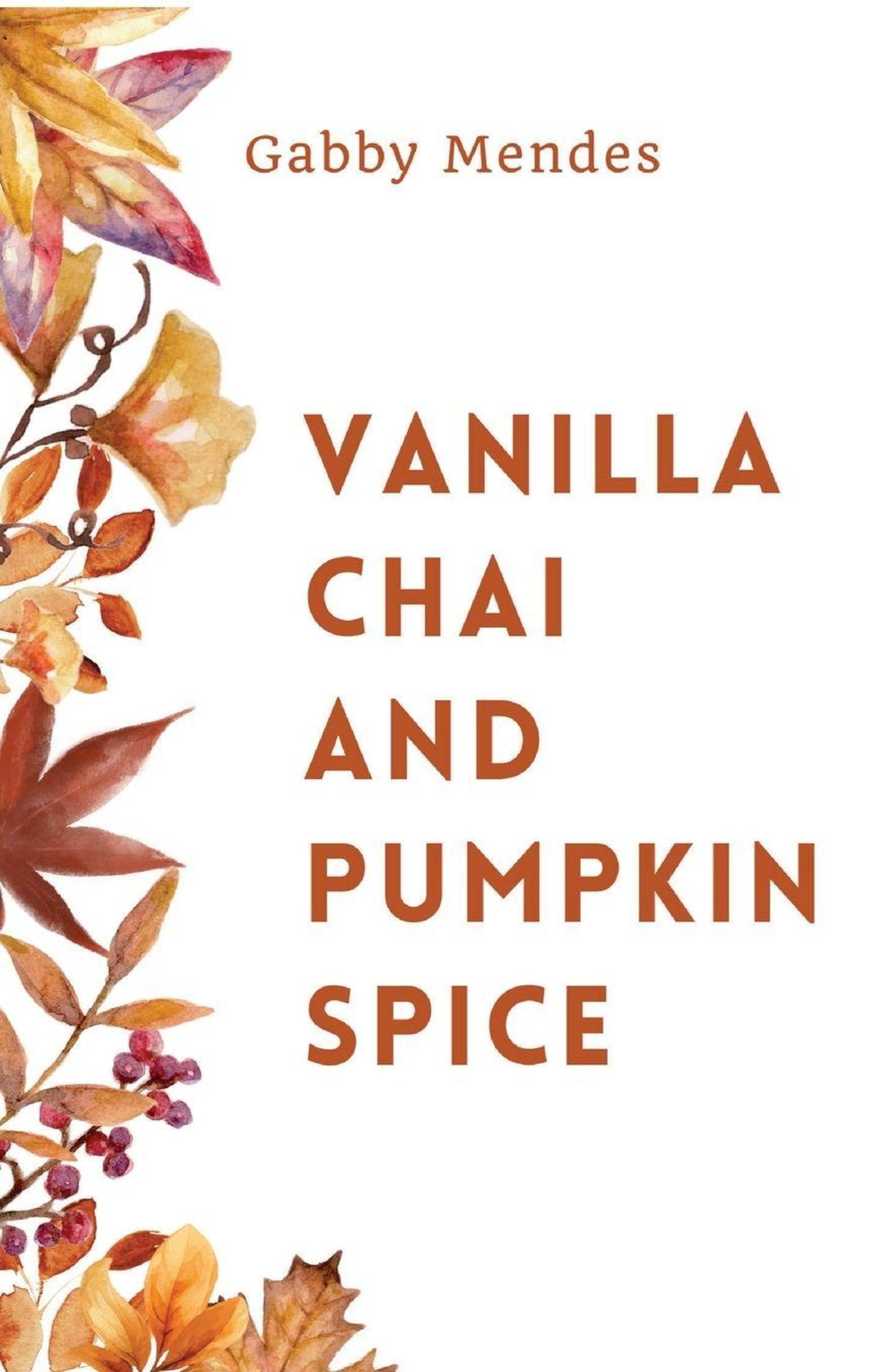„Vanilla Chai and Pumpkin Spice“, Autor „Gabby Mendes“. Herbstliche Blätter-Illustration links., Buch