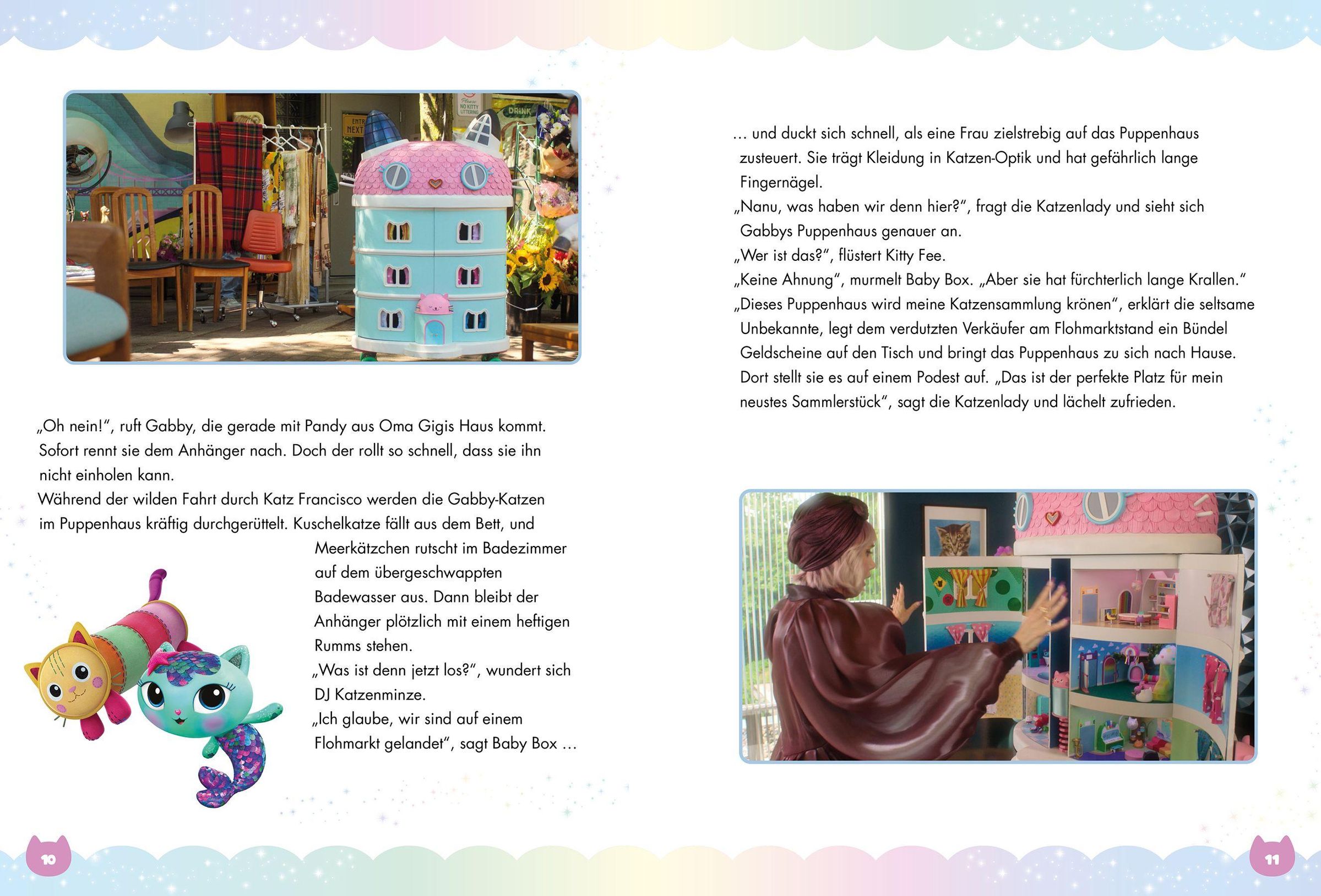 Gabby und ihre süßen Katzenfreunde sind mit Oma Gigi und dem Kittymobil unterwegs nach Katz Francisco. Doch was als fröhlicher Ausflug beginnt, wird schnell zu einem aufregenden Abenteuer: Plötzlich ist Gabbys magisches Puppenhaus spurlos verschwunden - und mit ihm auch die Gabby-Katzen. Kann Gabby ihre Freunde wiederfinden und das Puppenhaus aus den Krallen der seltsamen Katzenlady Vera retten? Komm mit auf eine pfot-tastische Reise voller Magie, Freundschaft und zauberhafter Überraschungen!