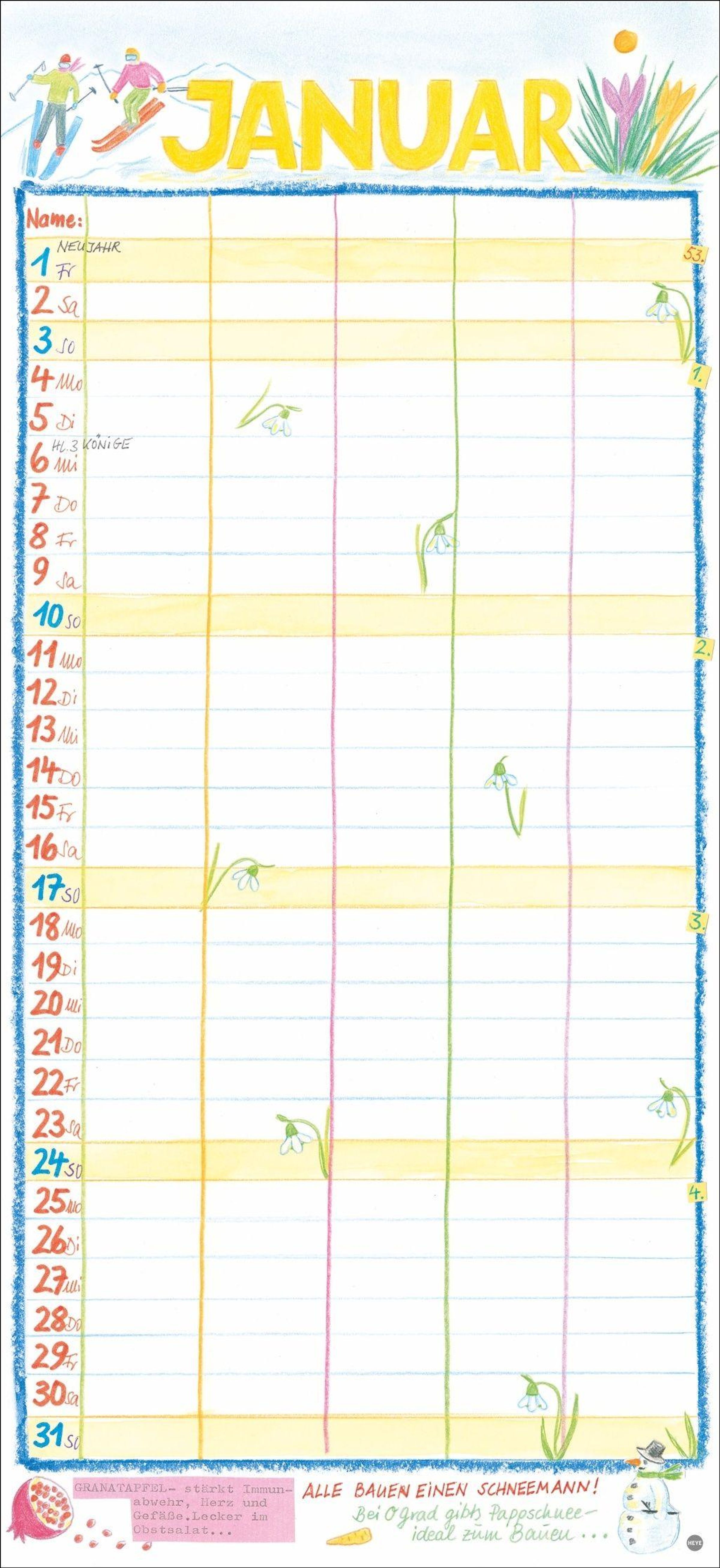 - Liebevoll illustrierter Kalender für Familien mit handschriftlichen Details. Wandkalender 2027 mit 5 Spalten.