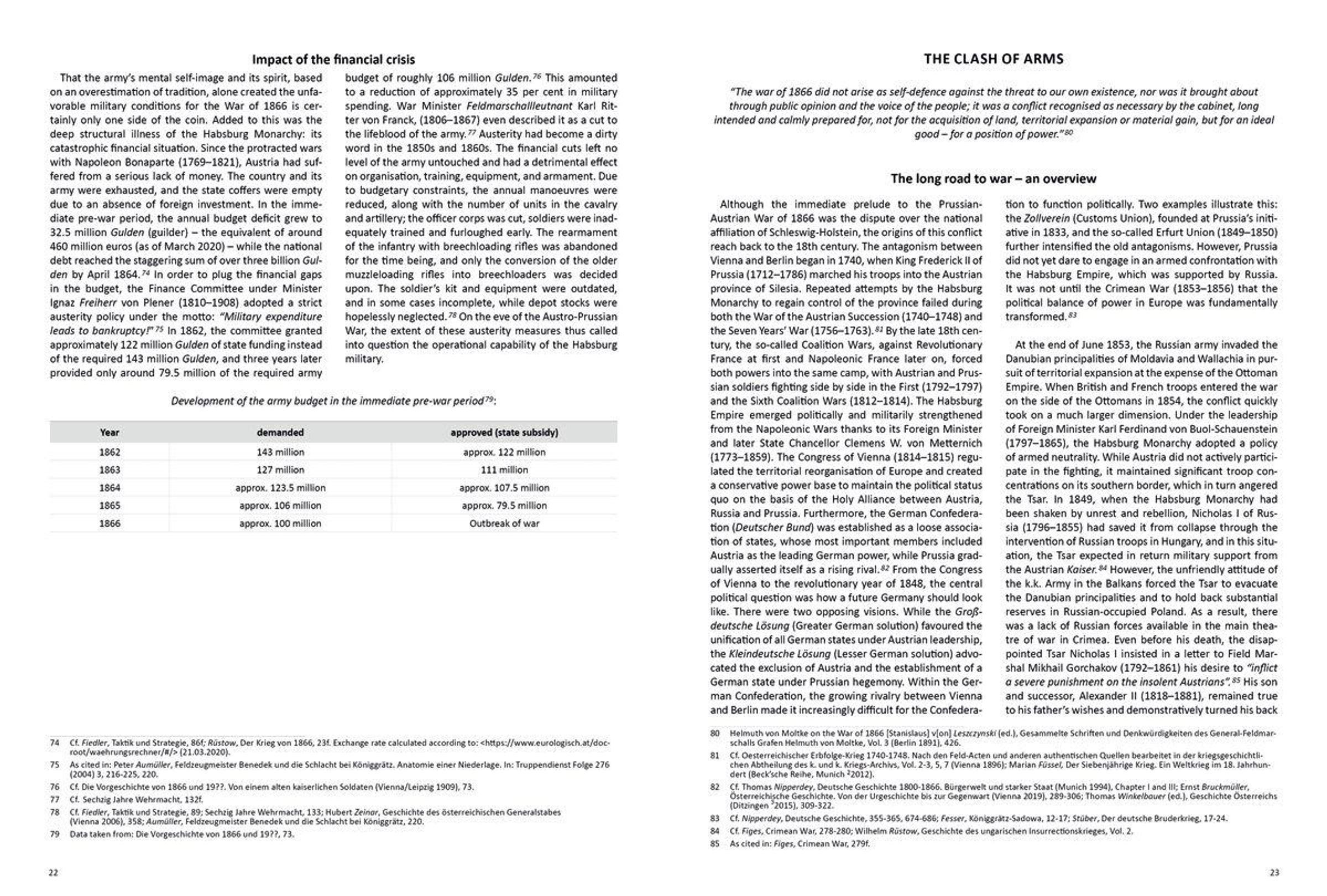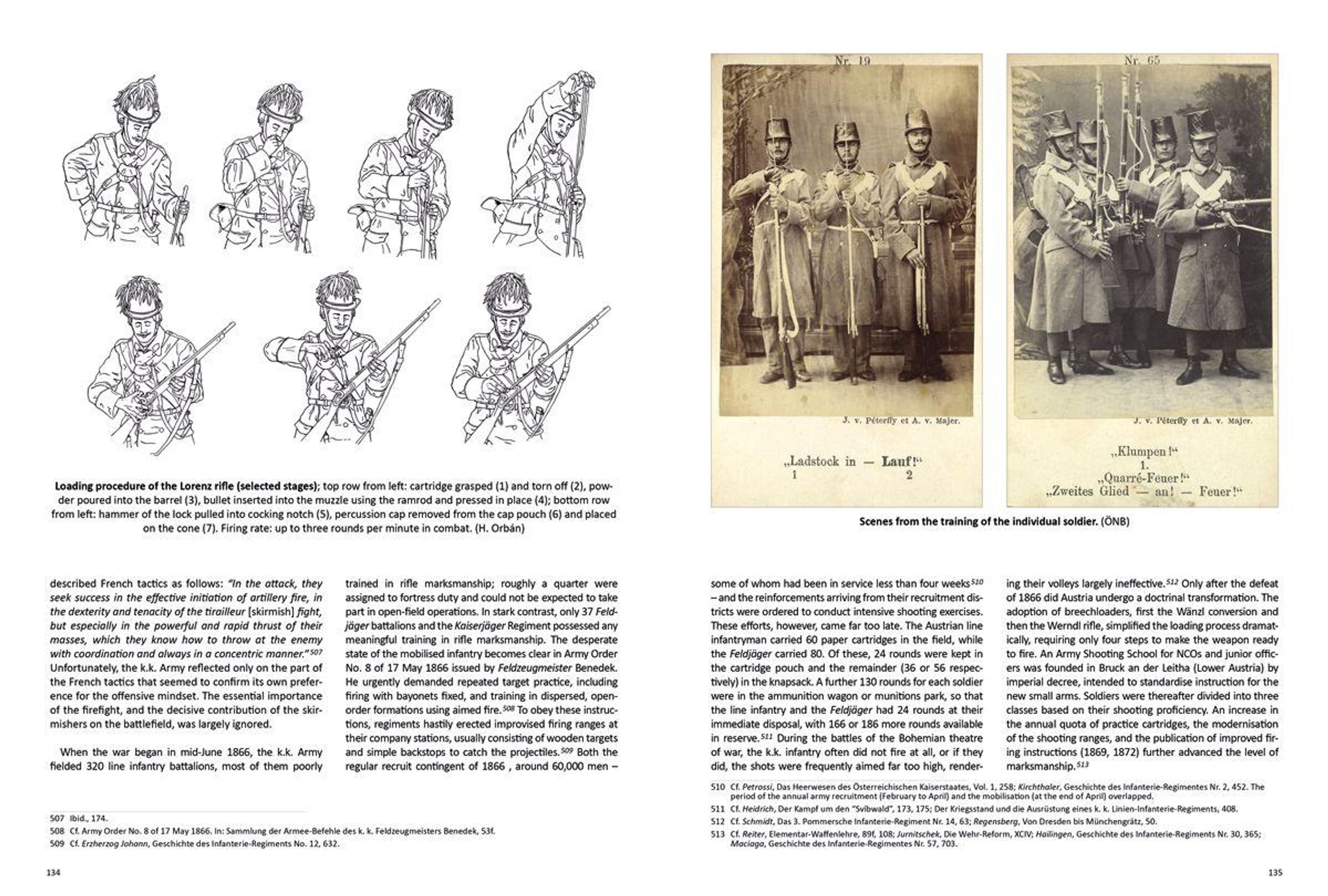 The scholarly inquiry of the 'causes' of Austria's defeat in 1866 is almost as old as the war against rising Prussia itself. Already in the immediate aftermath of the conflict, considerable energy was devoted to identifying the sources of failure. At the time, responsibility was attributed to the misjudgements of the high command, and above all to the commander-in-chief of the k. k. North Army, Feldzeugmeister Ludwig von Benedek. This one-sided interpretation, together with the broader debate surrounding the so-called 'question of guilt' (Schuldfrage), was later treated with increasing nuance. During the twentieth century, historians sought the origins of the defeat at both political and military levels. From a military perspective, research has primarily examined developments in armaments technology, the (strategic-) operational miscalculations of the campaign, and the structural deficiencies of the k. k. Army, which stemmed in large part from severe budgetary restrictions. By contrast, comparatively little attention has been devoted to battle tactics. In 1866, Austria entered the war against Prussia with a tactical doctrine nearly sixty years old, based on an overestimation of the historical tradition of military values. This volume examines precisely this neglected aspect. Within the broader context of armed conflicts since the Revolutionary and Napoleonic Wars against France, it introduces and systematically analyses Austrian military doctrine, with particular emphasis on tactics. The study critically examines the outdated systems of recruitment and training, while also considering the related fields of uniforms and equipment, soldiers' daily life, and military communication. The investigation, however, focuses primarily on two main themes: first, the Austrians' disdain for the employment of firearms; and second, their unshakeable belief in the invincibility of their own close-order battle formations. The bayonet charge, in particular, was accorded a special and almost emblematic status. The volume further explores the interaction between the various arms in wartime and highlights the complex interrelationship between strategic and tactical concepts. It becomes clear that the k. k.. Austrian Army was among the very last of the truly 'Napoleonic' forces; an army whose admirable courage could no longer compensate for hopelessly outdated infantry tactics in the age of industrialised warfare.