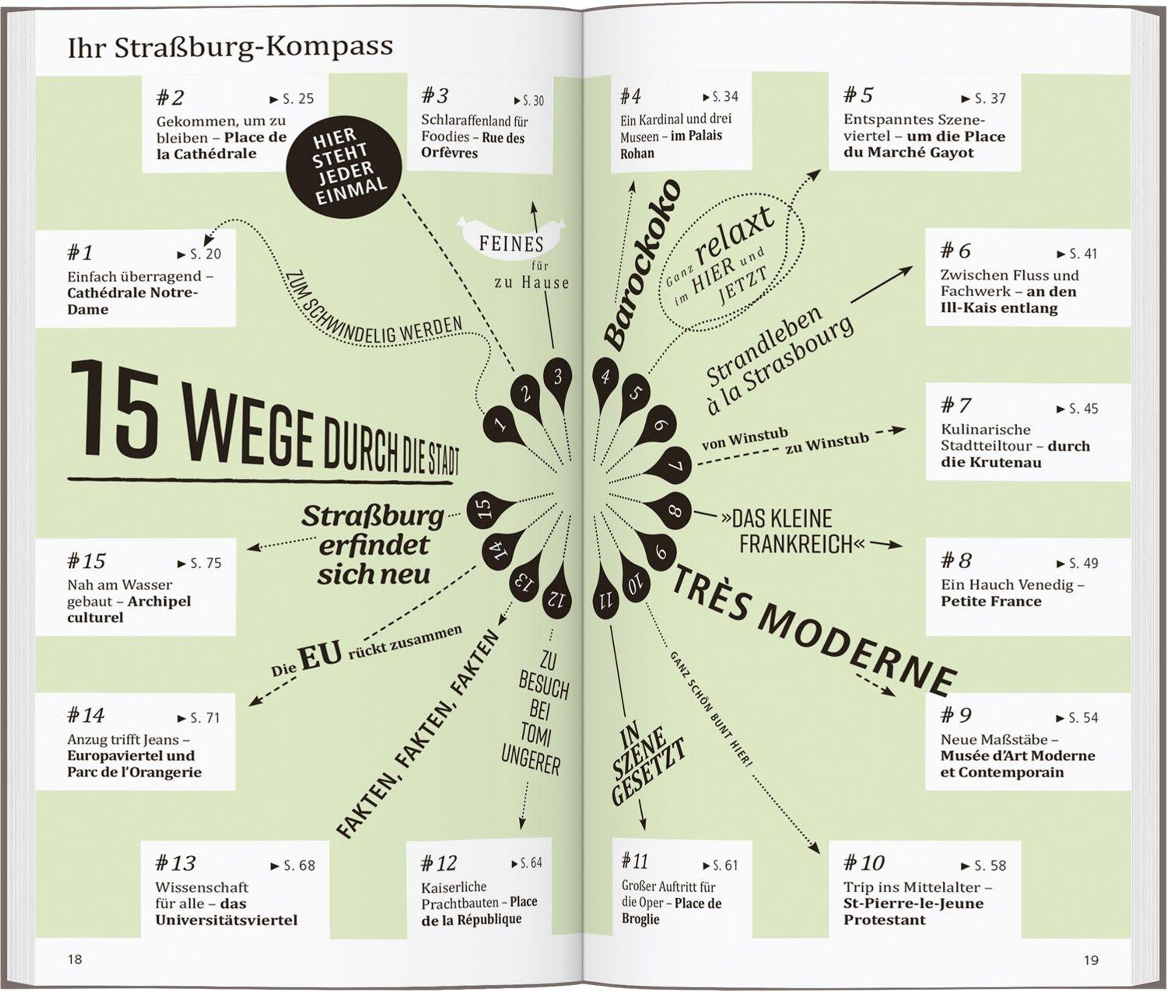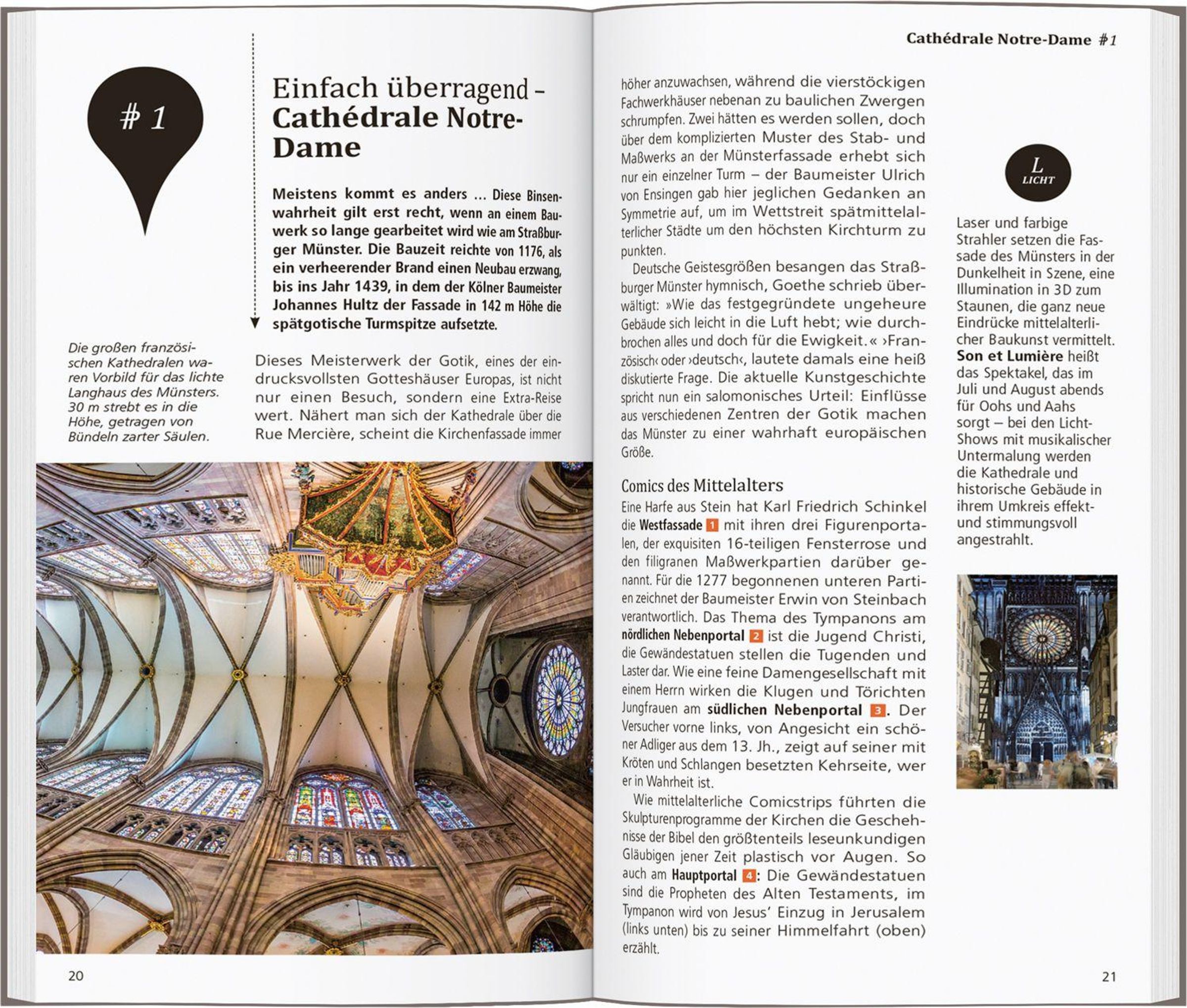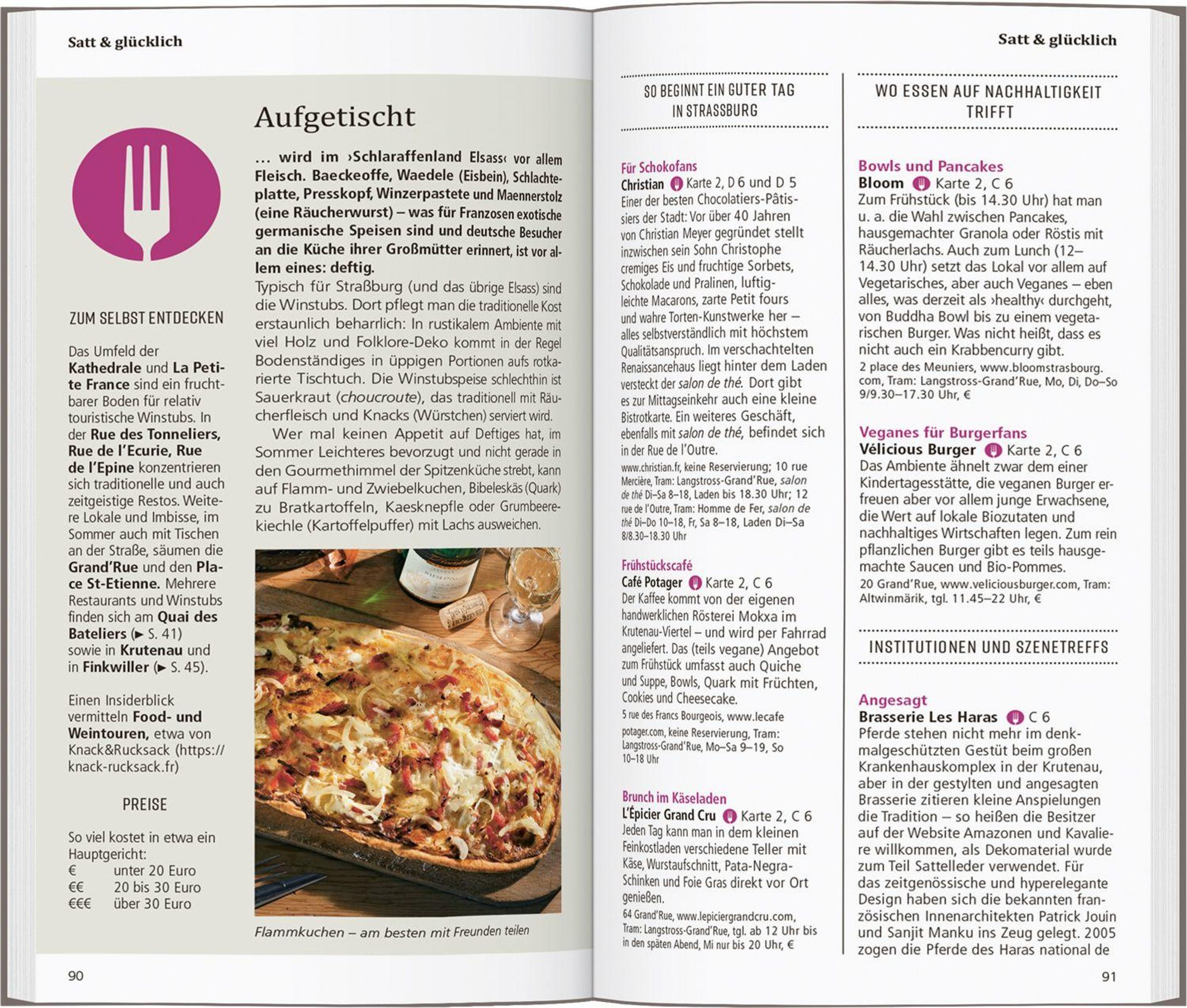 In eigenen Kapiteln erfahren Sie, wo es sich in fremden Betten gut schläft, wo Sie glücklich satt werden, wohin die Straßburger zum Stöbern und Entdecken gehen und wohin es sie zieht, wenn die Nacht beginnt.