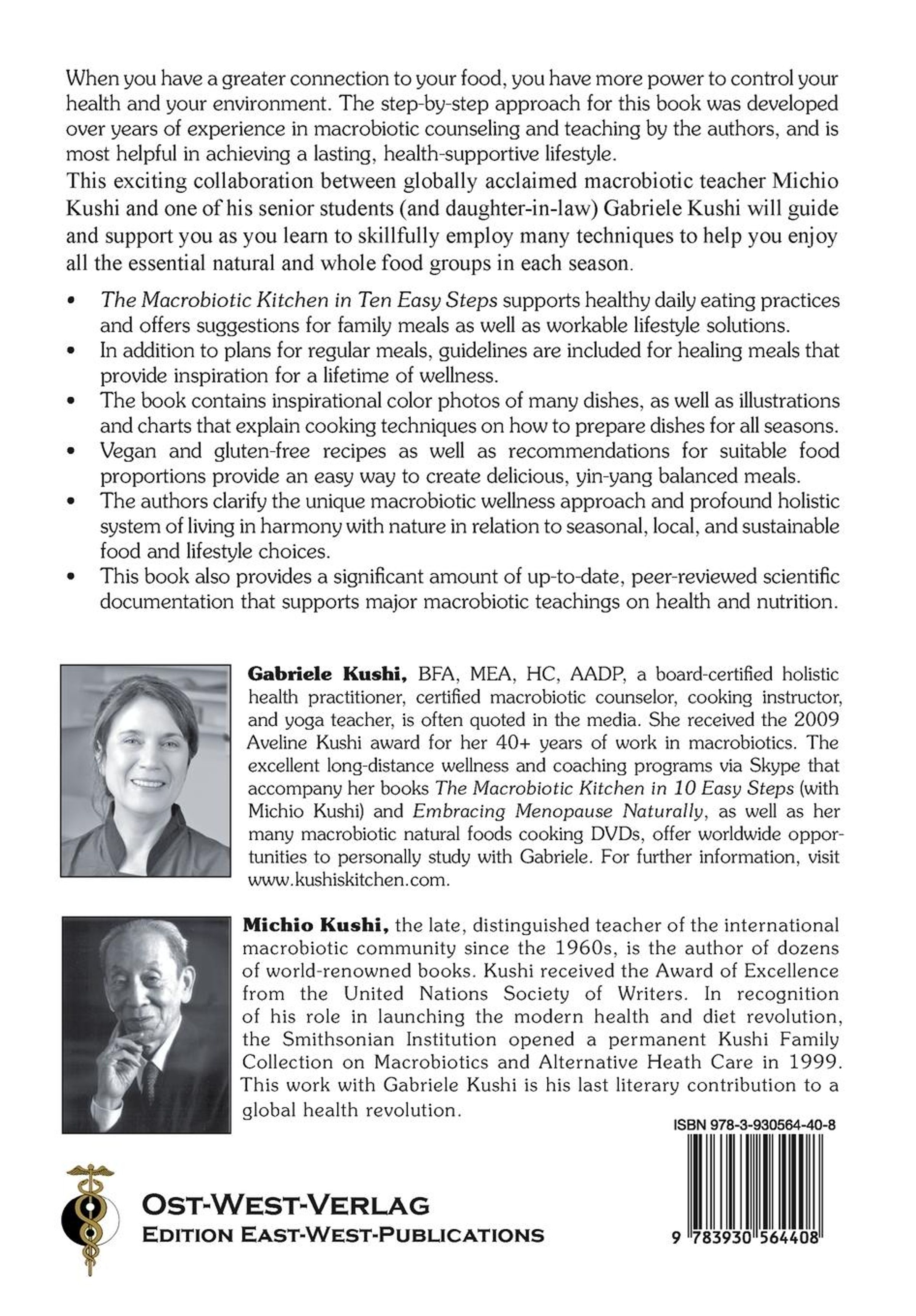Michio Kushi: Michio Kushi, the late distinguished teacher of the international macrobiotic community since the 1960s, is the author of dozens of world-renowned books. Kushi received the Award of Excellence from the United Nations Society of Writers. In recognition of his role in launching the modern health and diet revolution, the Smithsonian Institution opened a permanent Kushi Family Collection on Macrobiotics and Alternative Heath Care in 1999. This work with Gabriele Kushi is his last literary contribution to a global health revolution.