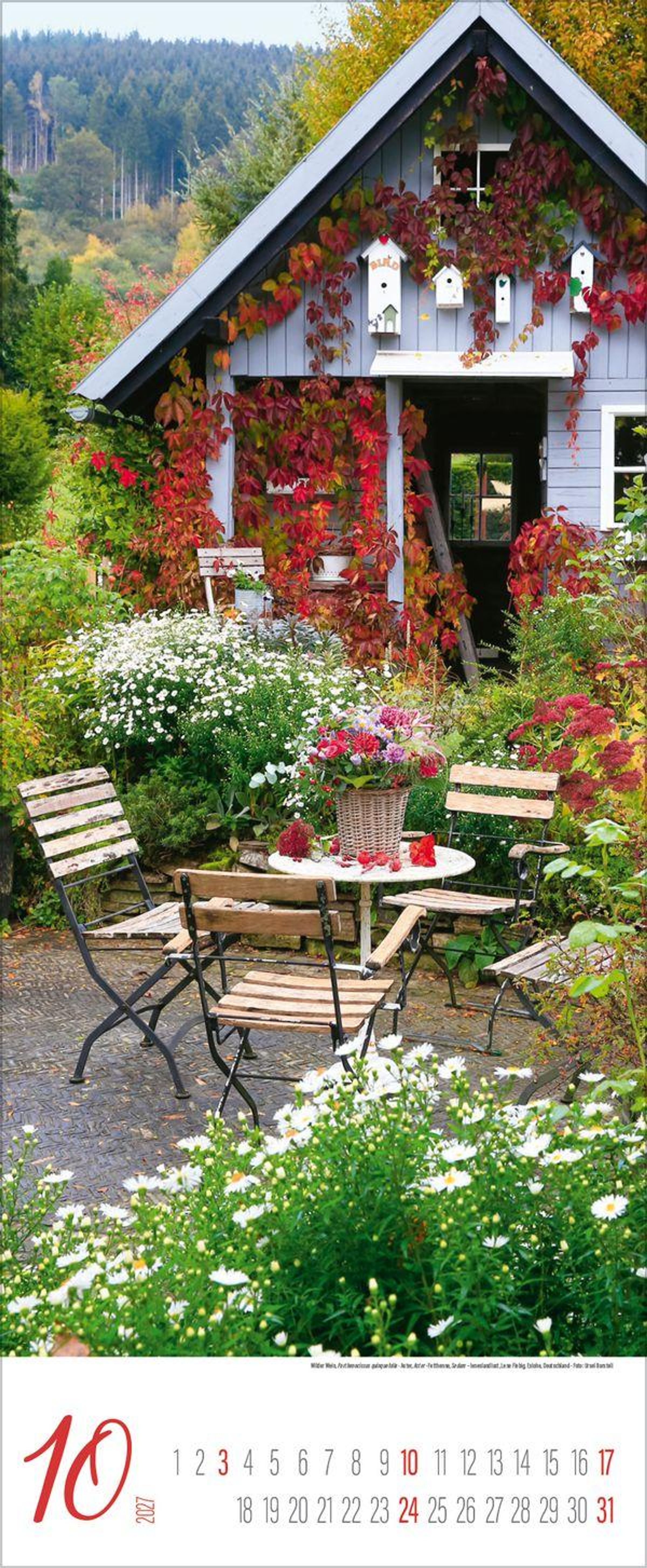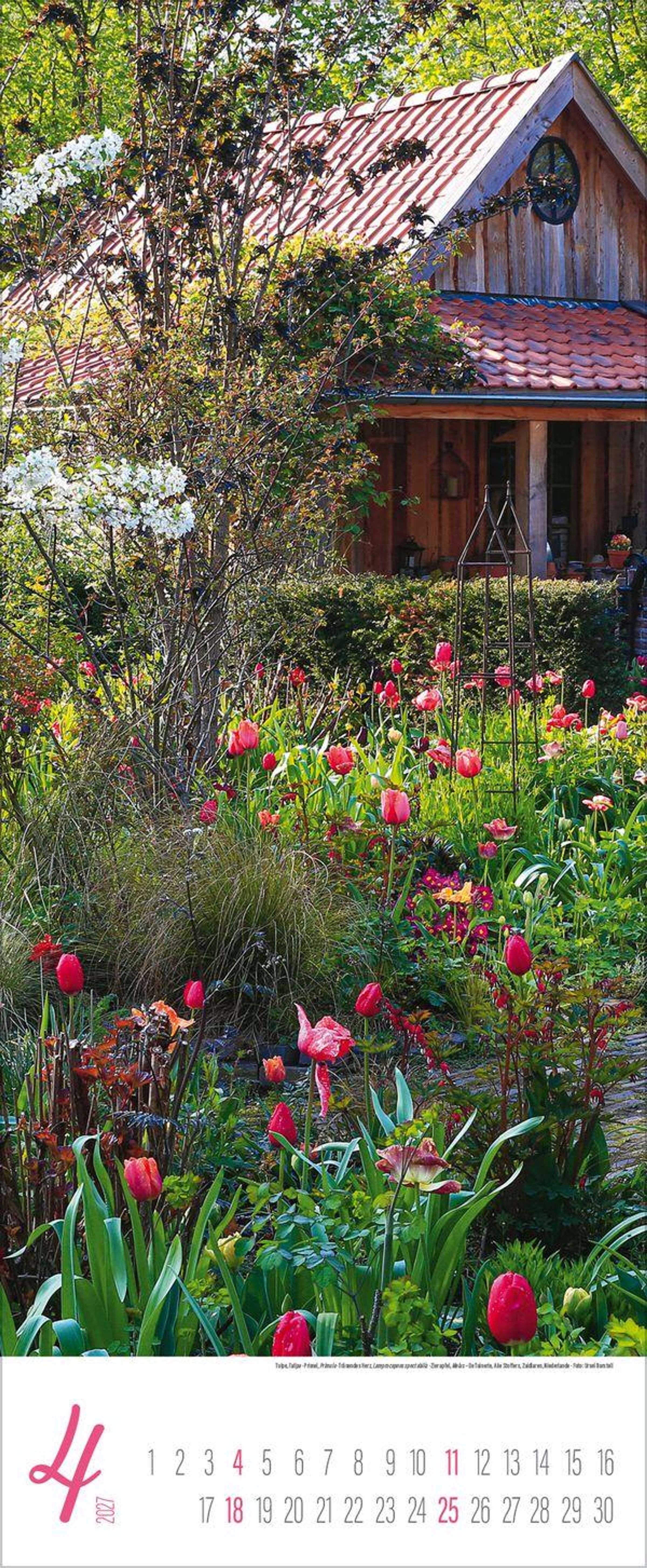 - Schmaler Wandkalender. Foto-Kunstkalender von Garten-Stilleben. PhotoArt Vertikal Kalender. 28,5 x 69 cm.