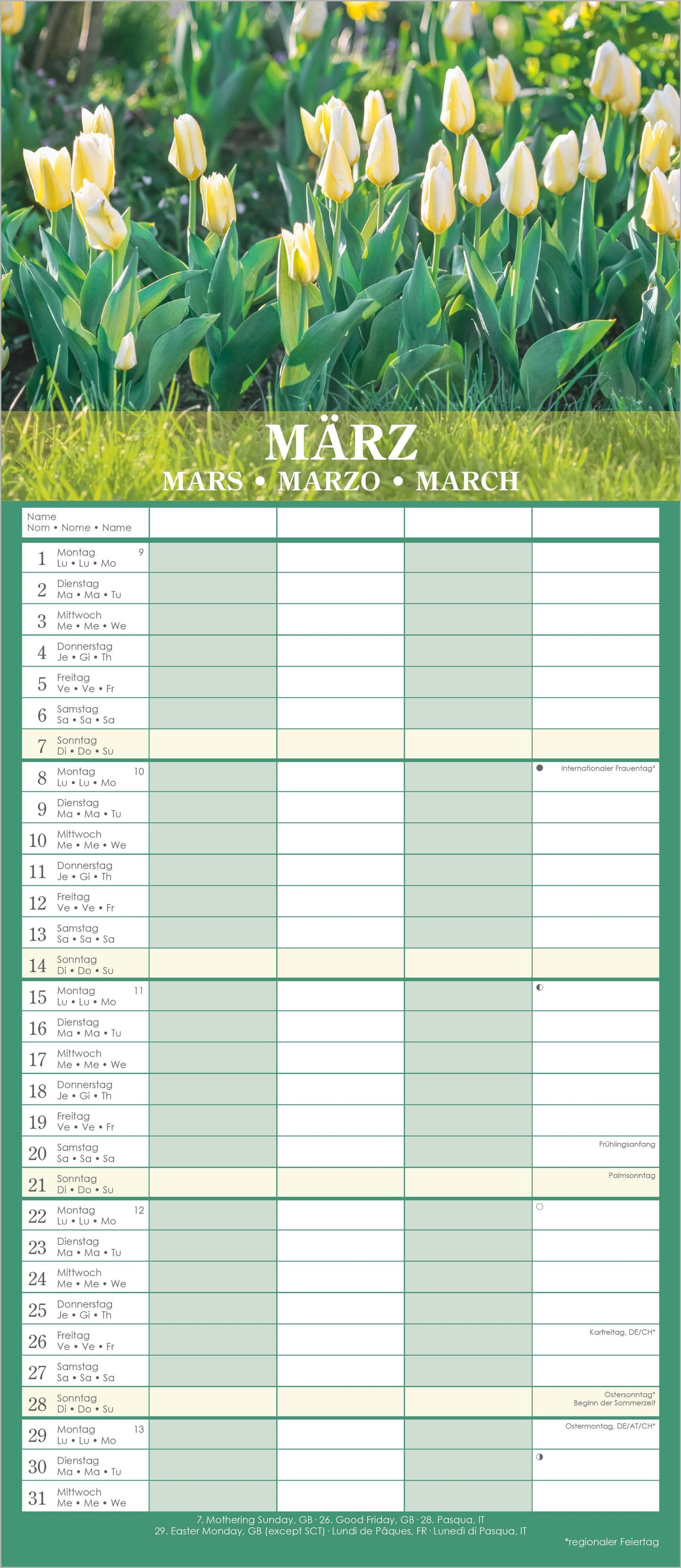 Mehrsprachiges Kalendarium: 4-sprachig (DE/FR/IT/GB) mit Feiertagen für DE/AT/CH