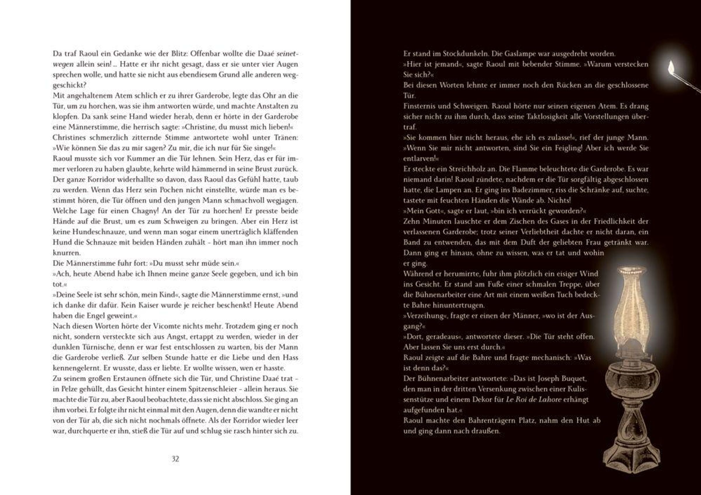 Der zeitlose Klassiker hinter Andrew Lloyd Webbers weltberühmten Musical Großzügig veredelte Schmuckausgabe mit Goldfolie, Hochprägung¿und Leseband Detailverliebte Gestaltung mit einzigartigen Illustrationen Mit 10 aufwendigen Extras zwischen den Seiten In den Tiefen der Pariser Oper lauert ein düsteres Geheimnis ... Eine mysteriöse Gestalt treibt ihr Unwesen im Schatten der Bühne. Von der Welt verstoßen und von brennender Leidenschaft für die Musik getrieben, lenkt ein maskiertes Phantom die Geschicke des Opernhauses aus dem Verborgenen. Als die junge Sängerin Christine Daaé seine Aufmerksamkeit erregt, formt das Phantom sie zum gefeierten Opernstar. Doch Ruhm und Glanz haben ihren Preis: Christine gerät in ein gefährliches Spiel aus Liebe, Macht und Eifersucht. Zerrissen zwischen der dunklen Anziehungskraft des Phantoms und der vertrauten Nähe zu ihrem Jugendfreund muss sie eine Entscheidung treffen, bei der mehr auf dem Spiel steht als nur ihr Herz. Das Schicksal der gesamten Oper hängt an einem seidenen Faden. Einzigartige und edle Schmuckausgabe - ein Schatz in jedem Bücherschrank! Diese großzügig illustrierte Schmuckausgabe versetzt die Leserinnen und Leser ins Paris des späten 19. Jahrhunderts und erweckt den zeitlosen Klassiker zu neuem Leben. Mit zehn aufwendig gestalteten Extras - darunter eine detaillierte Stadtkarte, spannende Hintergrundinfos zur Entstehung des Romans, ein Brief des Phantoms und vieles mehr - wird die faszinierende Geschichte rund um das Phantom der Oper zu einem unvergesslichen Leseerlebnis.