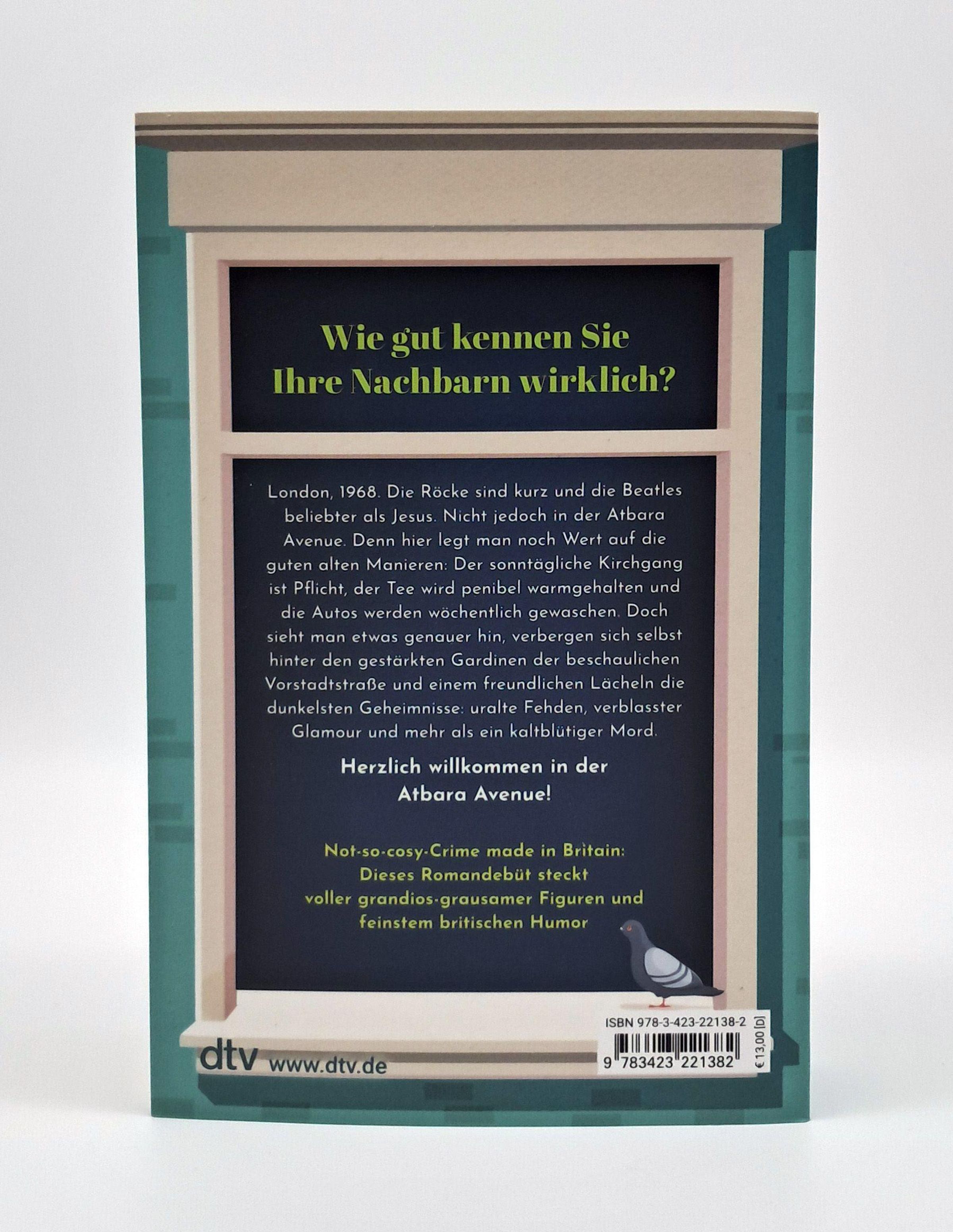 London, 1968. Die Röcke sind kurz und die Beatles beliebter als Jesus. Nicht jedoch in der Atbara Avenue. Denn hier legt man noch Wert auf die guten alten Manieren: Der sonntägliche Kirchgang ist Pflicht, der Tee wird penibel warmgehalten und die Autos werden wöchentlich gewaschen. Doch sieht man etwas genauer hin, verbergen sich selbst hinter den gestärkten Gardinen der beschaulichen Vorstadtstraße und einem freundlichen Lächeln die dunkelsten Geheimnisse: uralte Fehden, verblasster Glamour und mehr als ein kaltblütiger Mord. Herzlich willkommen in der Atbara Avenue!