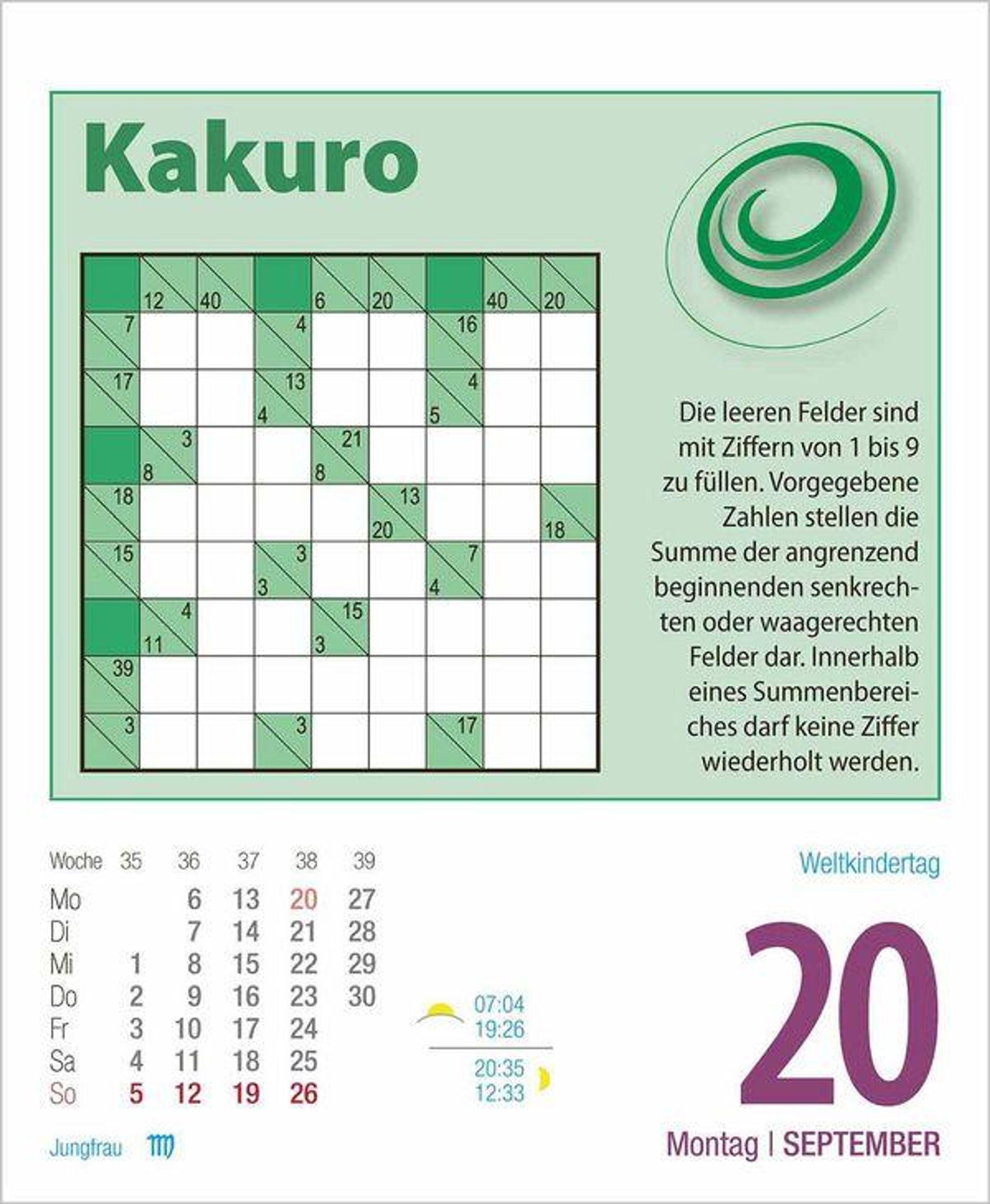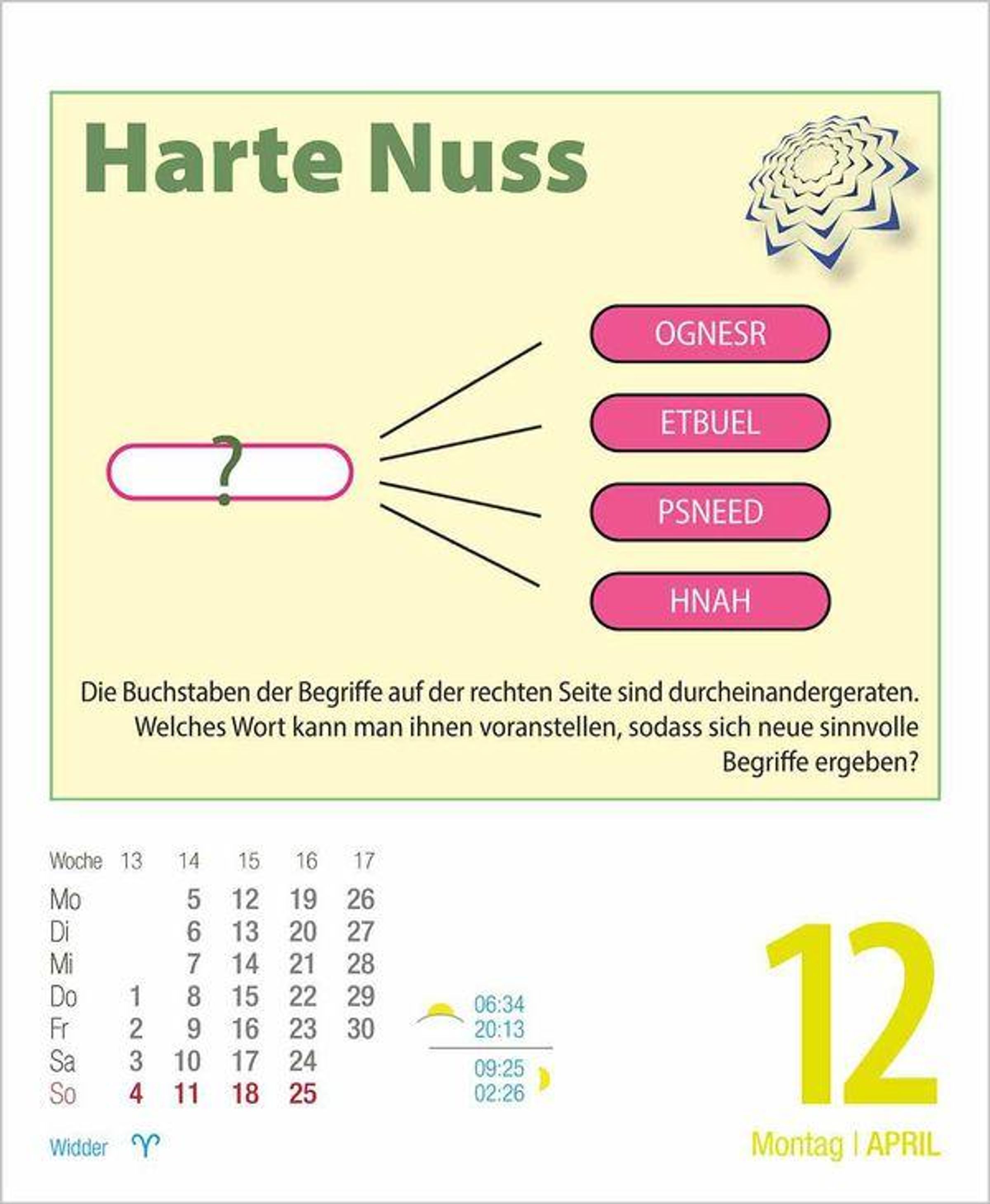 Trainieren Sie Ihre grauen Zellen spielerisch und freuen Sie sich auf neue spannende Denkaufgaben und knifflige Rätsel für das ganze Jahr.