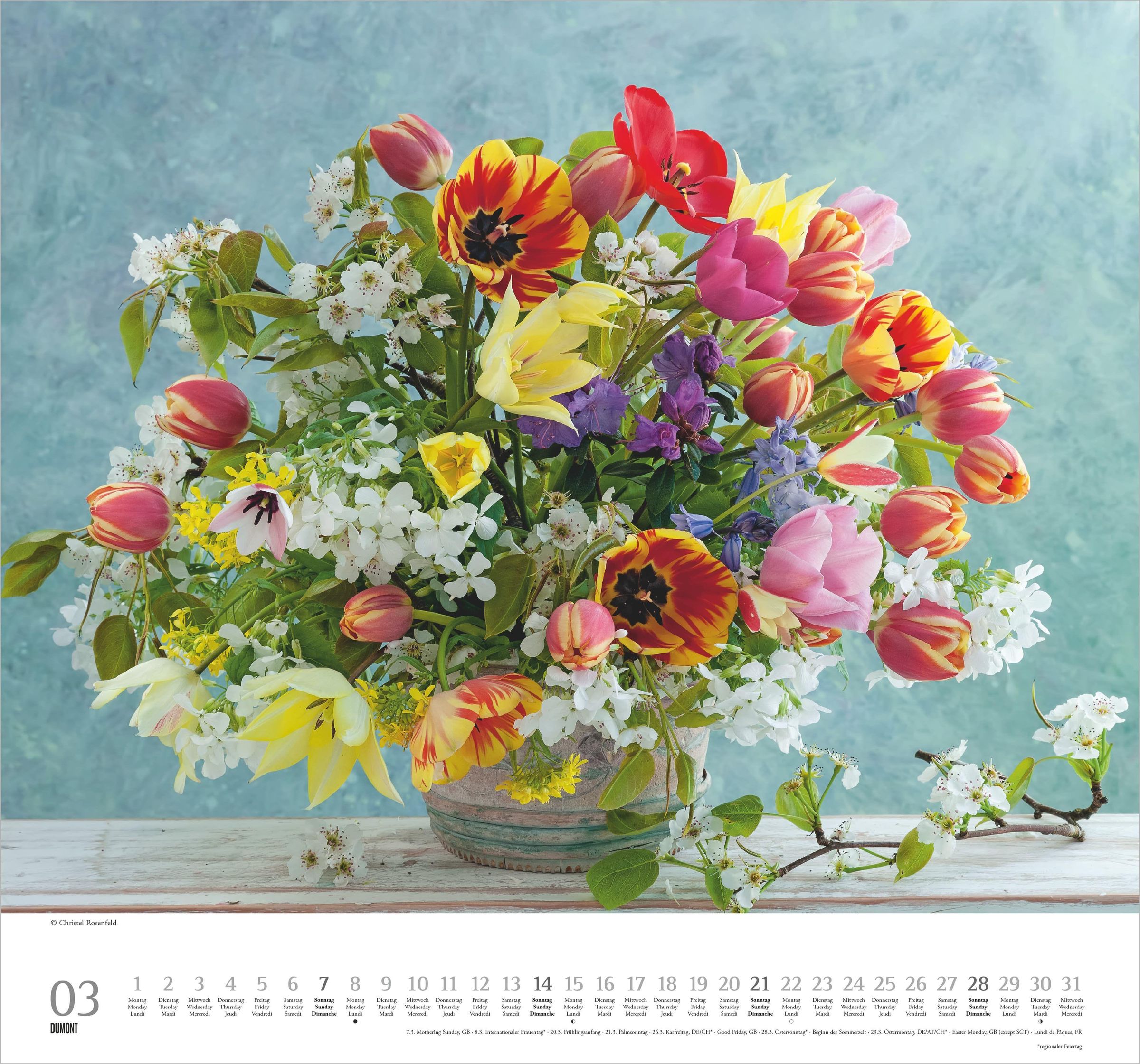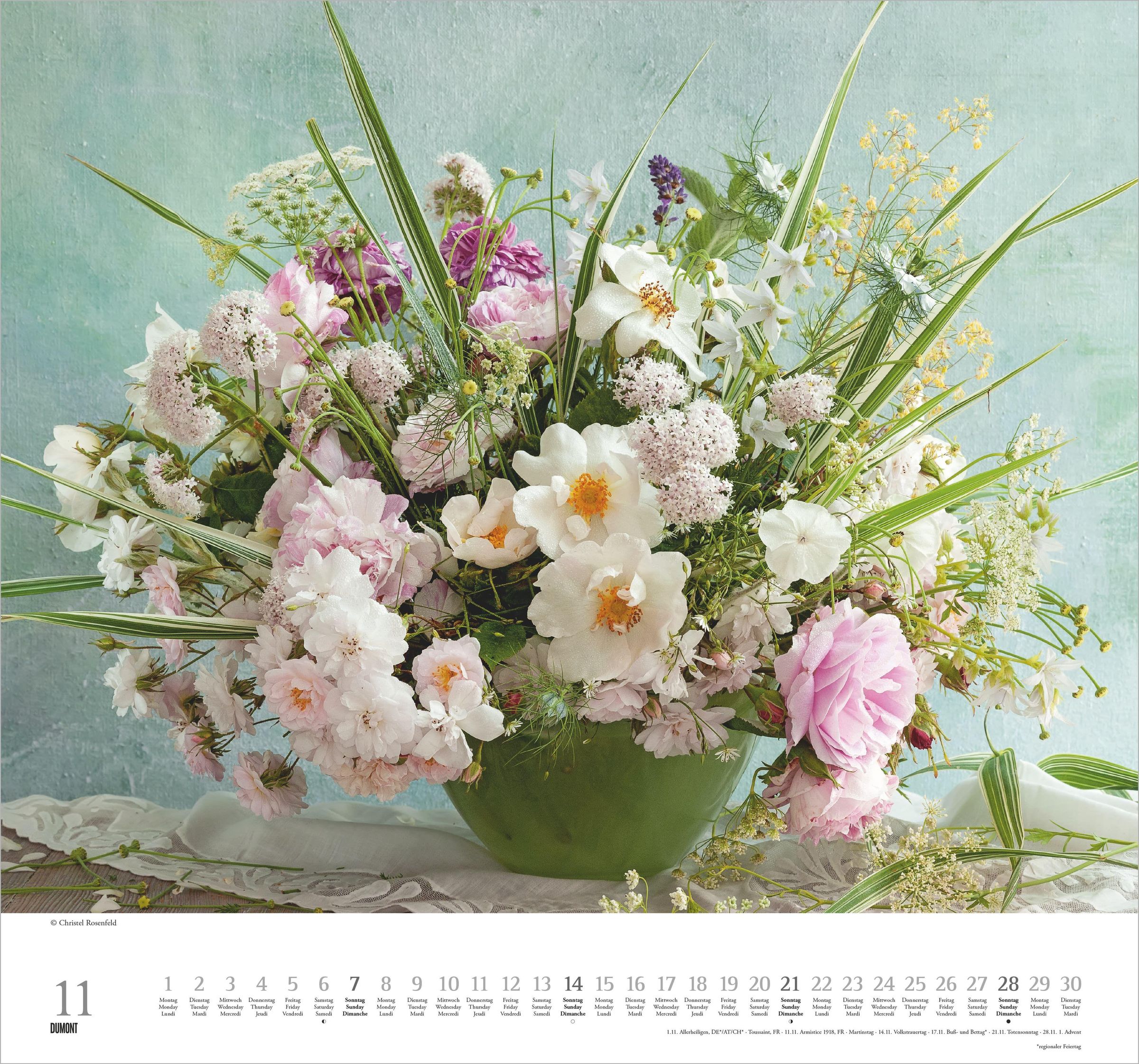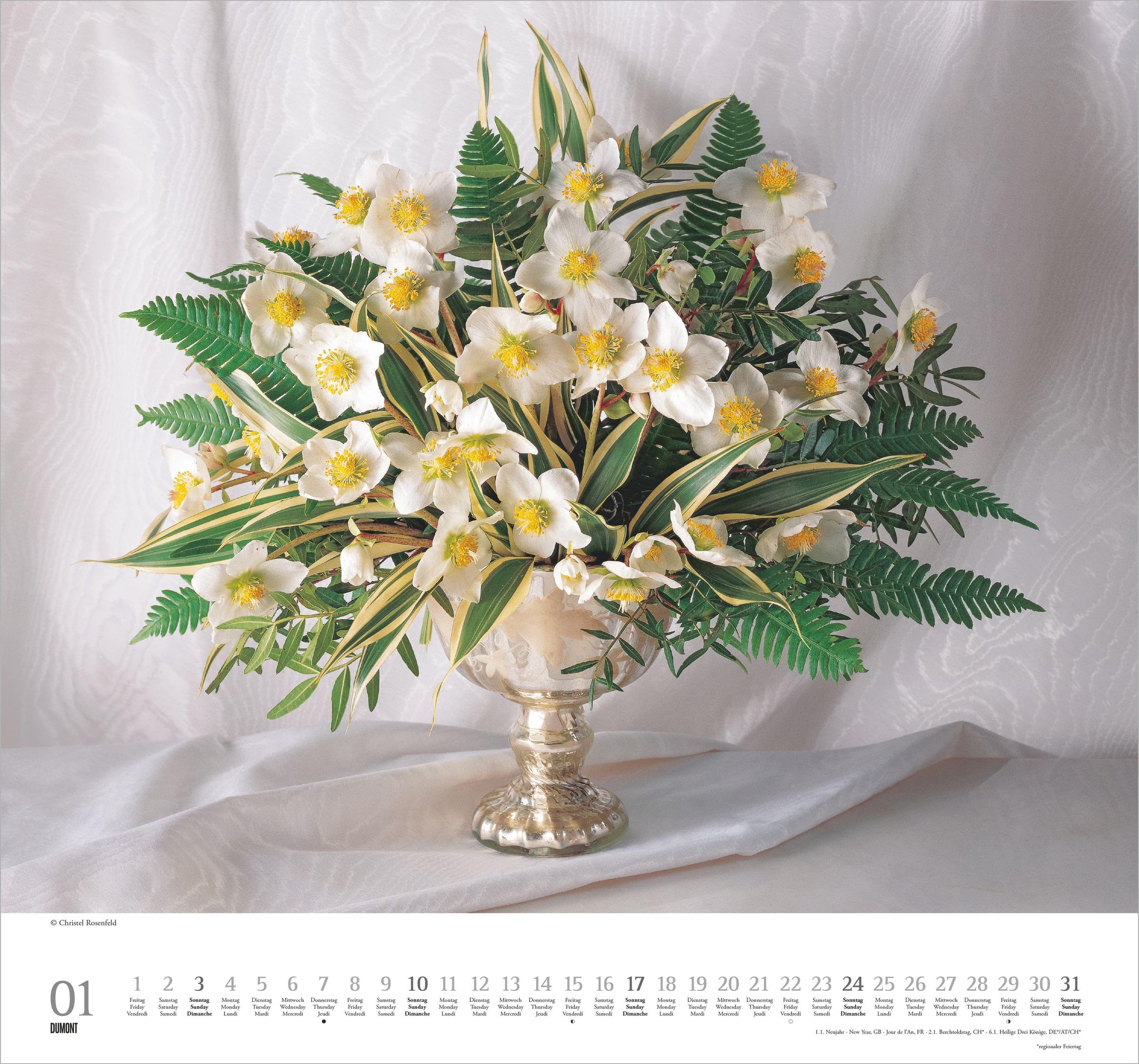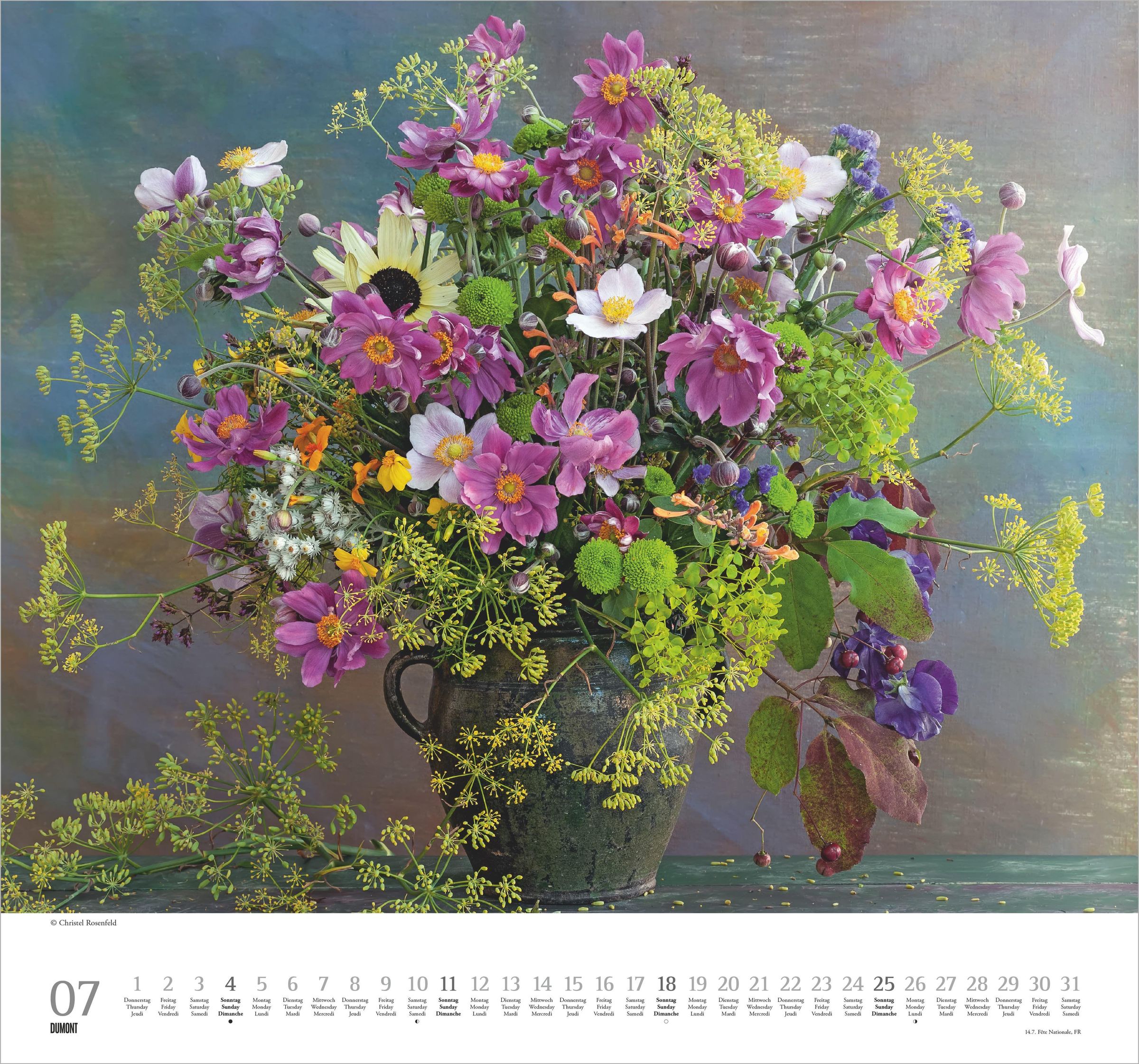 Ein edler Blumen-Kalender, der jeden Monat mit neuen floralen Kompositionen bezaubert -- ein stilvolles Geschenk und dekorativer Wandschmuck für alle Blumenliebhaber.