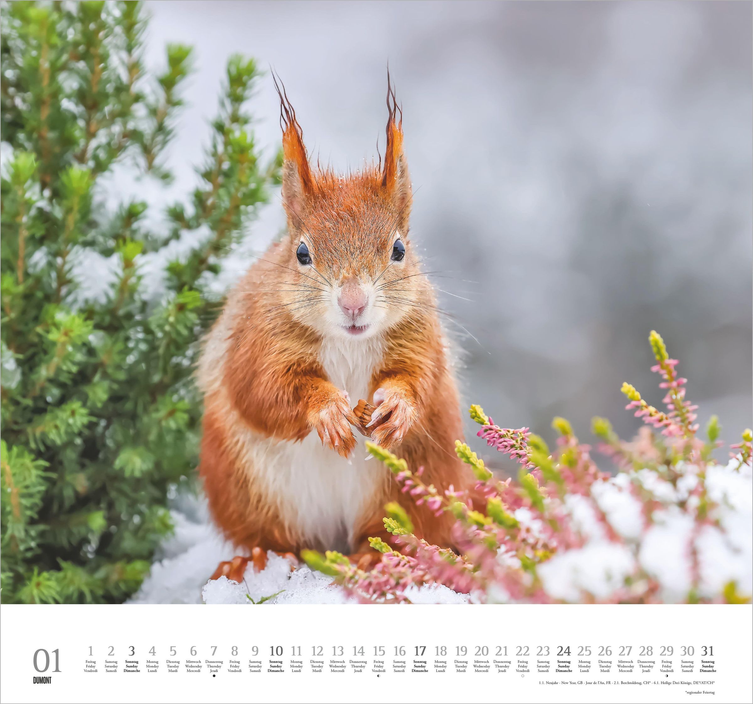 12 Eichhörnchen-Motive: Monat für Monat neue, bezaubernde Naturaufnahmen dieser wendigen Kletterkünstler.