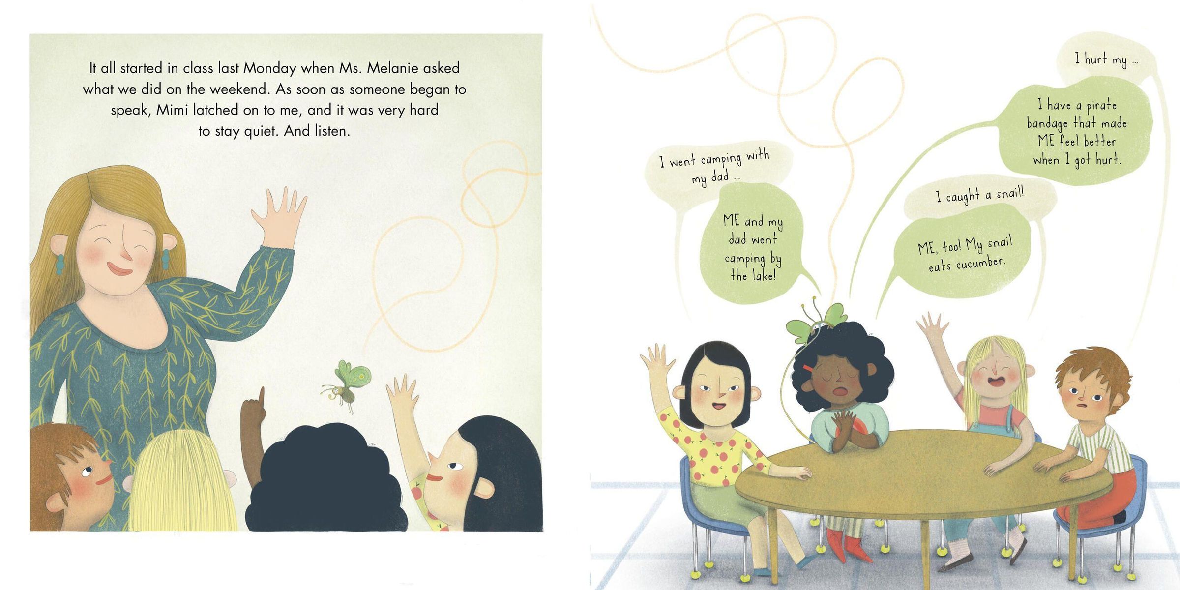 No one wants to play with Philomena, and she knows why: it's the big, bad Mimi. Whenever someone starts talking, the Mimi shows up, and it becomes impossible for Philomena to not talk about herself. "ME, too! Watch ME! Listen to ME!" It's becoming a problem - for everyone. Philomena is desperate to for the big, bad Mimi to go away so the other children will play with her again. So she's thrilled when her teacher tells her there's a powerful creature that can chase away the big, bad Mimi for good. When Philomena finally encounters this creature, she discovers why listening to what others have to say is a skill worth practicing.