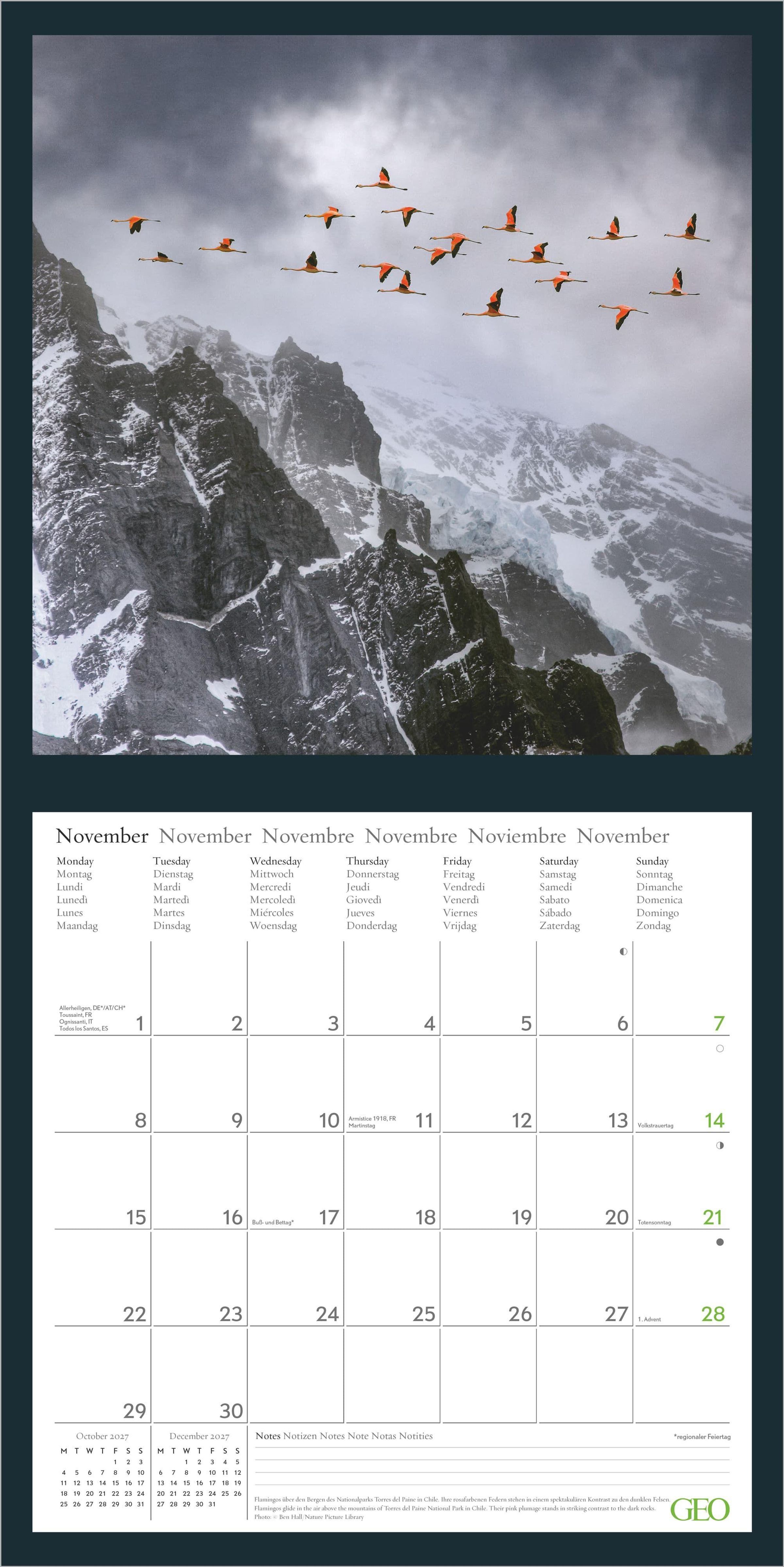 Der GEO Amazing Nature Kalender 2027 vereint eindrucksvolle Fotografie und praktische Funktionalität -- ein dekorativer Wandkalender und ein besonderes Geschenk für Naturliebhaber.