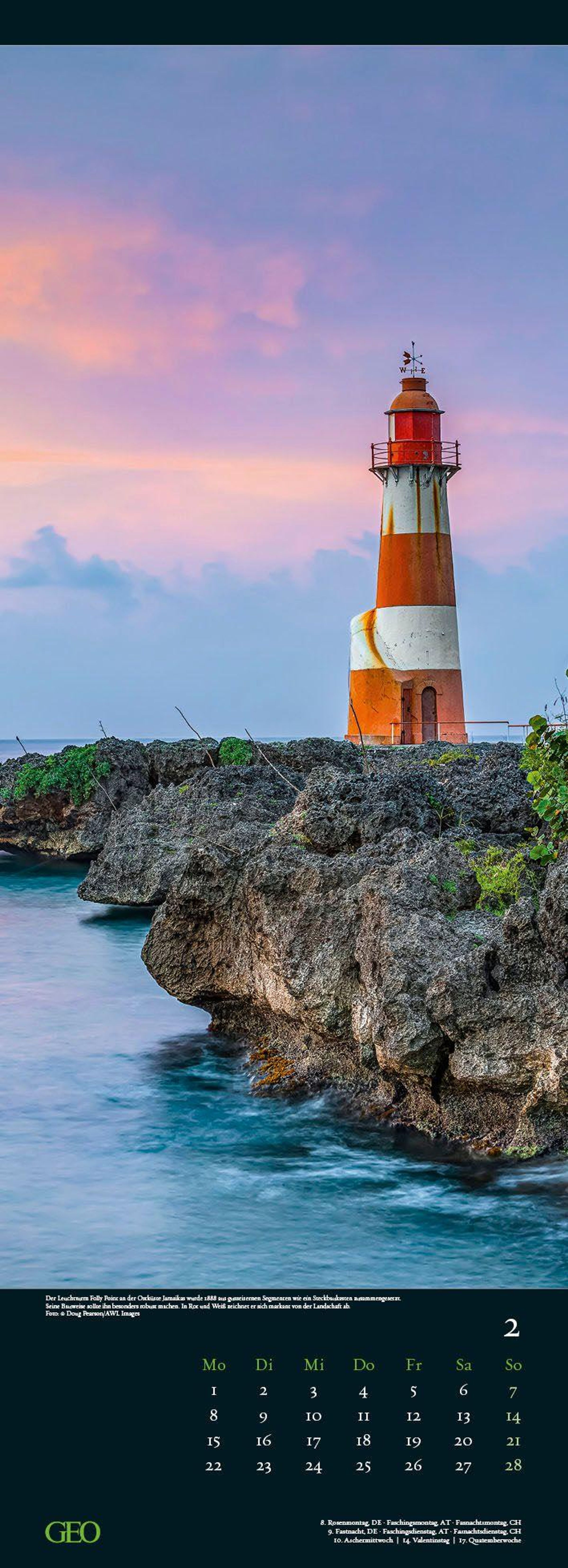 Der GEO Leuchttürme 2027 Kalender präsentiert zwölf außergewöhnliche Leuchttürme aus aller Welt -- majestätische Bauwerke, die seit Jahrhunderten Schiffe sicher leiten und Wind und Wetter trotzen. Im eleganten Vertikalformat rücken sie Monat für Monat in den Mittelpunkt und zeigen ihre Schönheit sowie maritime Stärke.