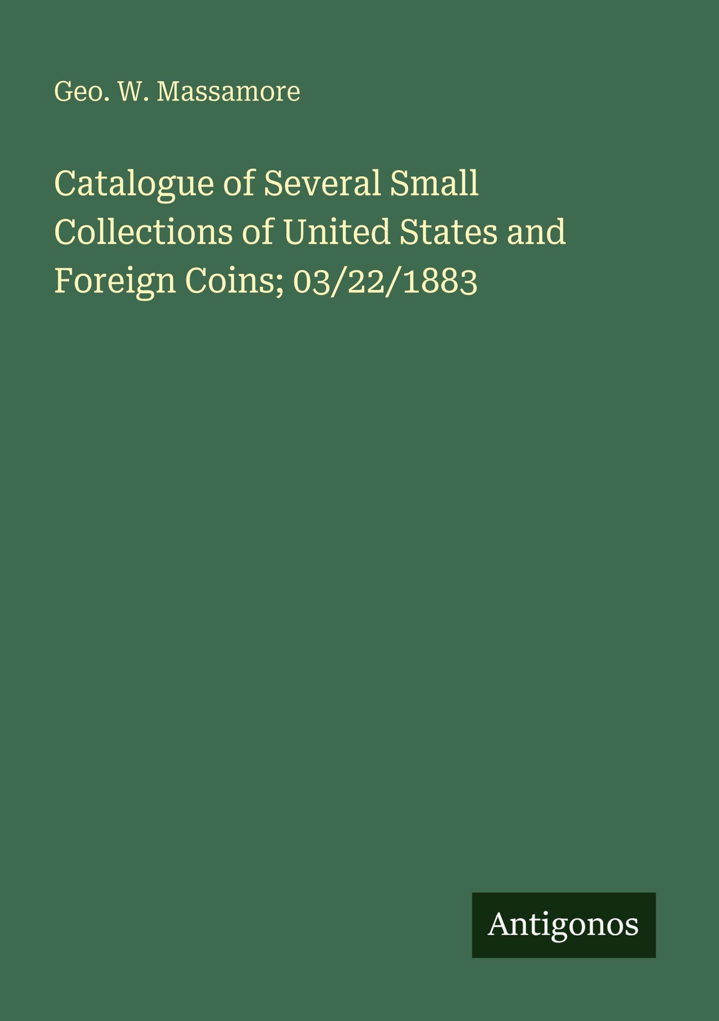 Geo. W. Massamore: Catalogue of Several Small Collections of United States and Foreign Coins; 03/22/1883, Kartoniert / Broschiert