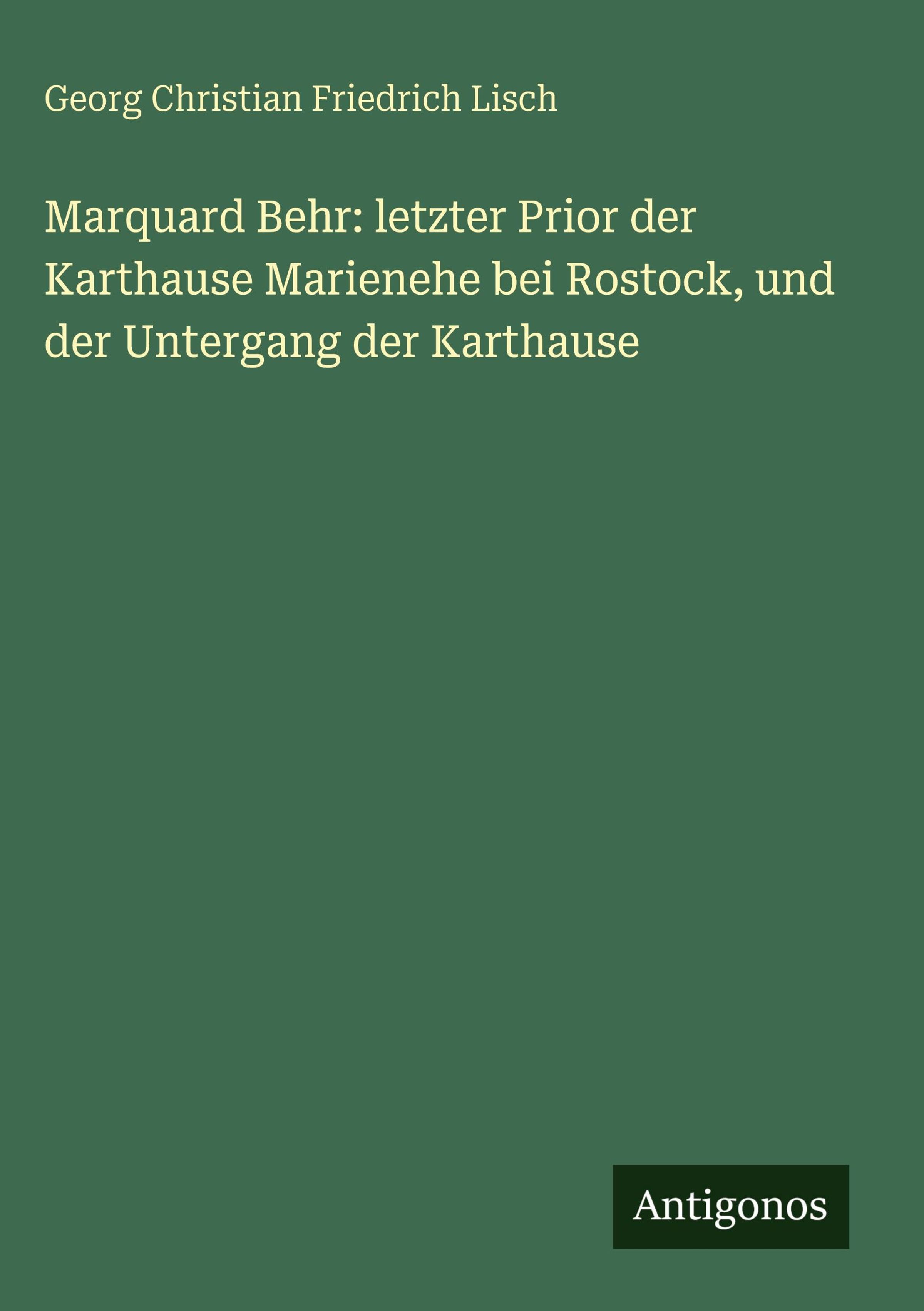 Georg Christian Friedrich Lisch: Marquard Behr: letzter Prior der Karthause Marienehe bei Rostock, und der..., Gebunden