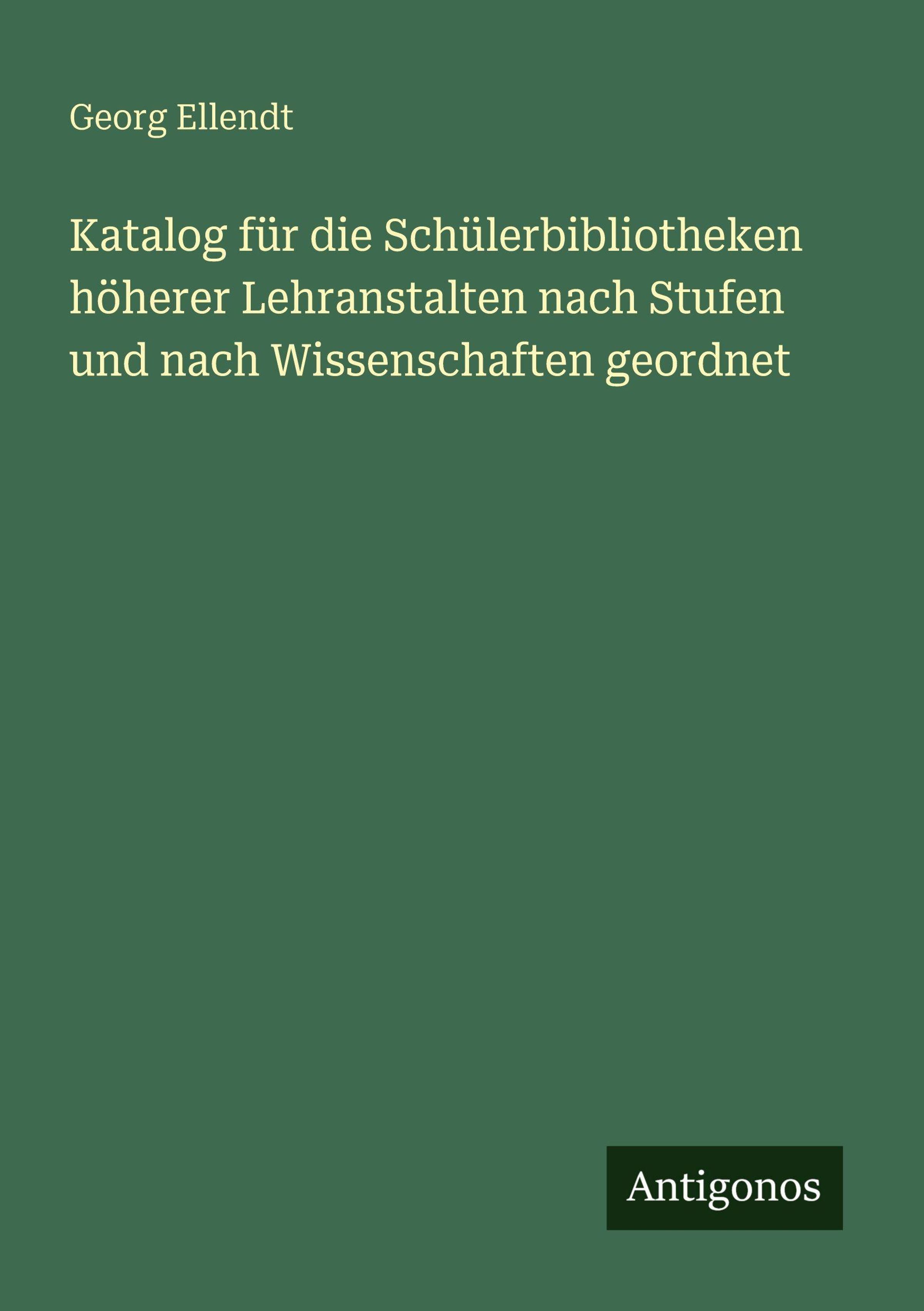 Georg Ellendt: Katalog für die Schülerbibliotheken höherer Lehranstalten nach Stufen und nach Wissenschaften..., Kartoniert / Broschiert