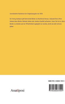 Unveränderter Nachdruck der Originalausgabe von 1854. Der Verlag Anatiposi gibt historische Bücher als Nachdruck heraus. Aufgrund ihres Alters können diese Bücher fehlende Seiten oder mindere Qualität aufweisen. Unser Ziel ist es, diese Bücher zu erhalten und der Öffentlichkeit zugänglich zu machen, damit sie nicht verloren gehen.