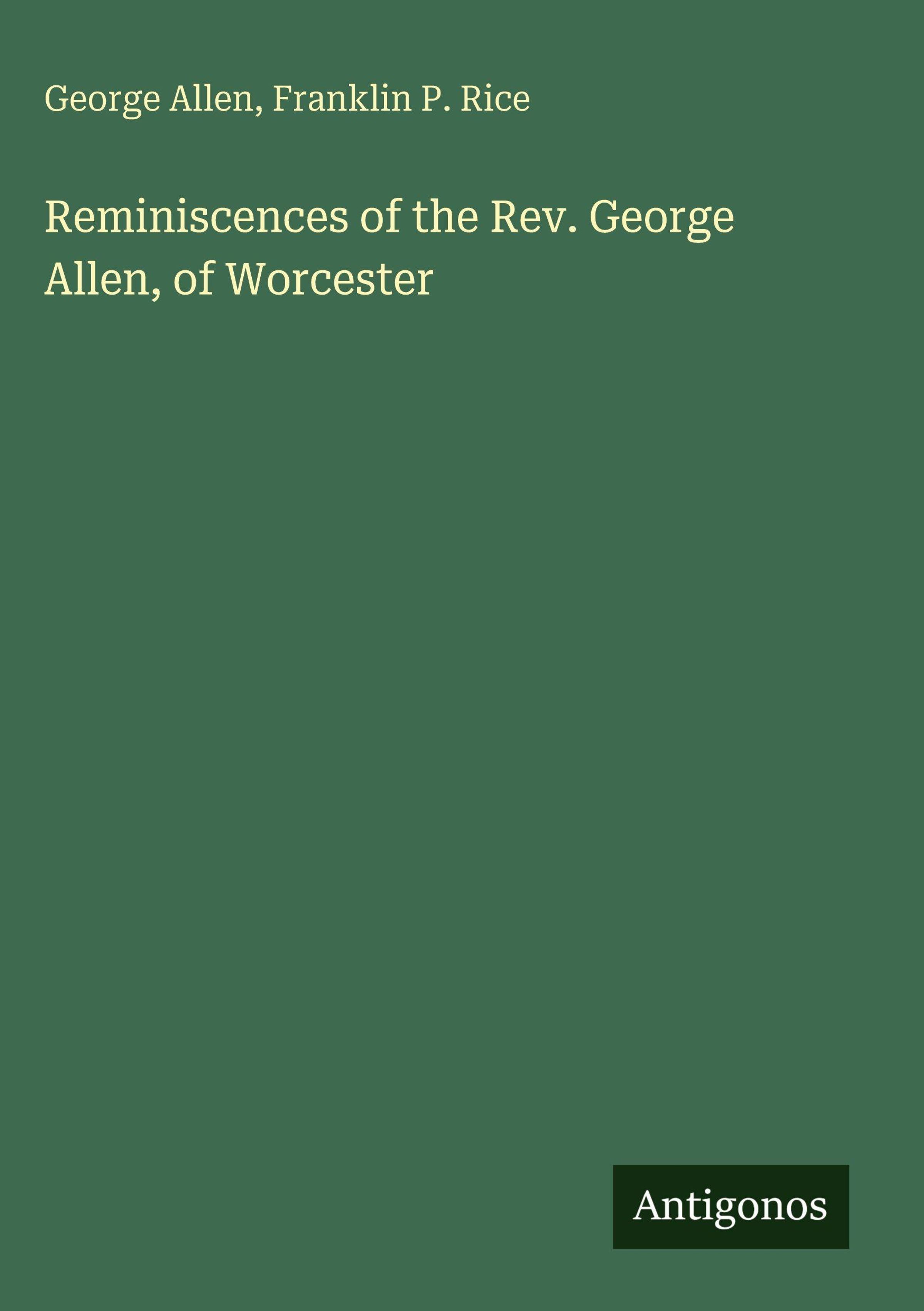 Weitere Ausgaben von Reminiscences of the Rev. George Allen, of Worcester |