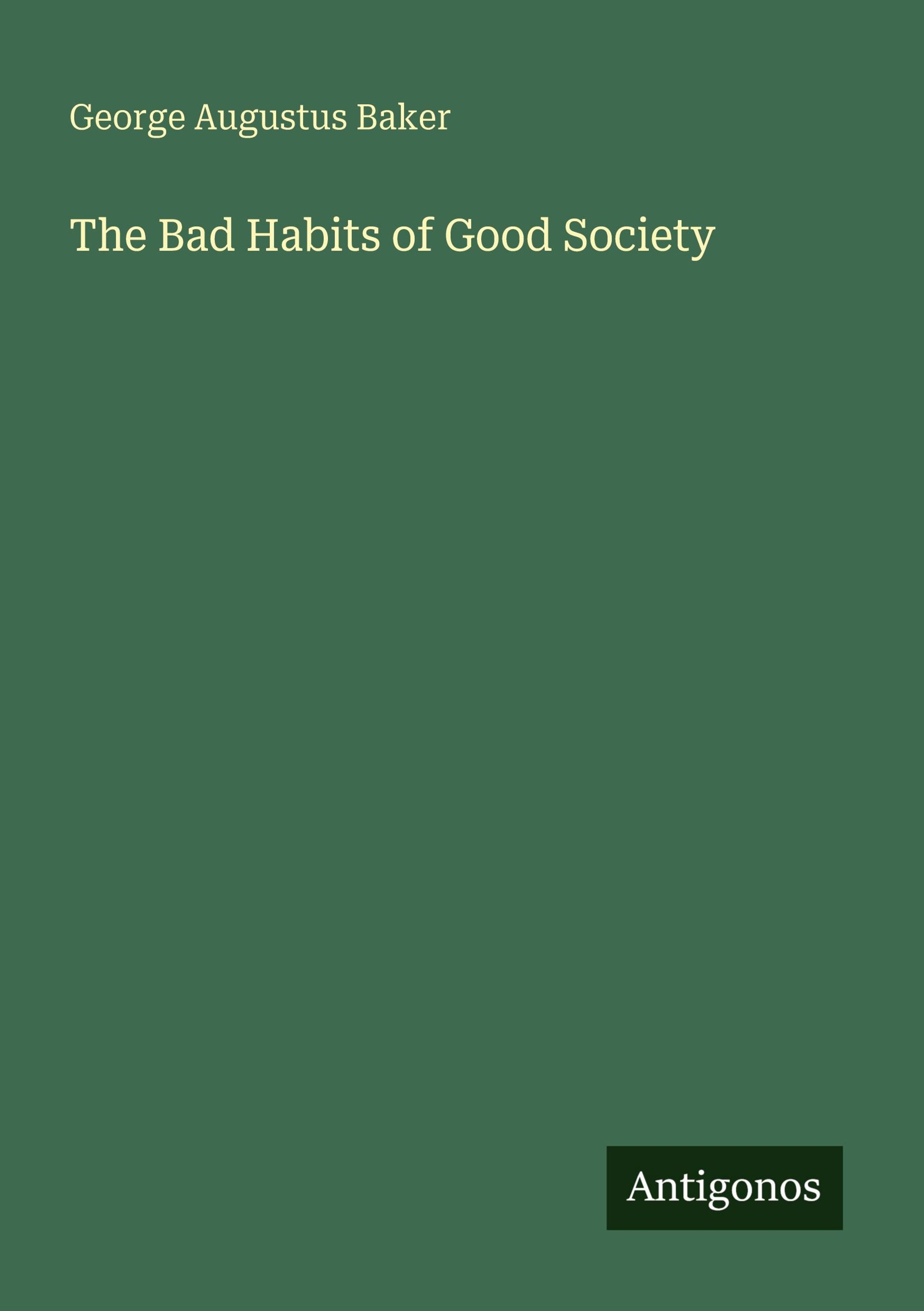 Text: "George Augustus Baker. The Bad Habits of Good Society. Antigonos" auf grünem Hintergrund., Buch