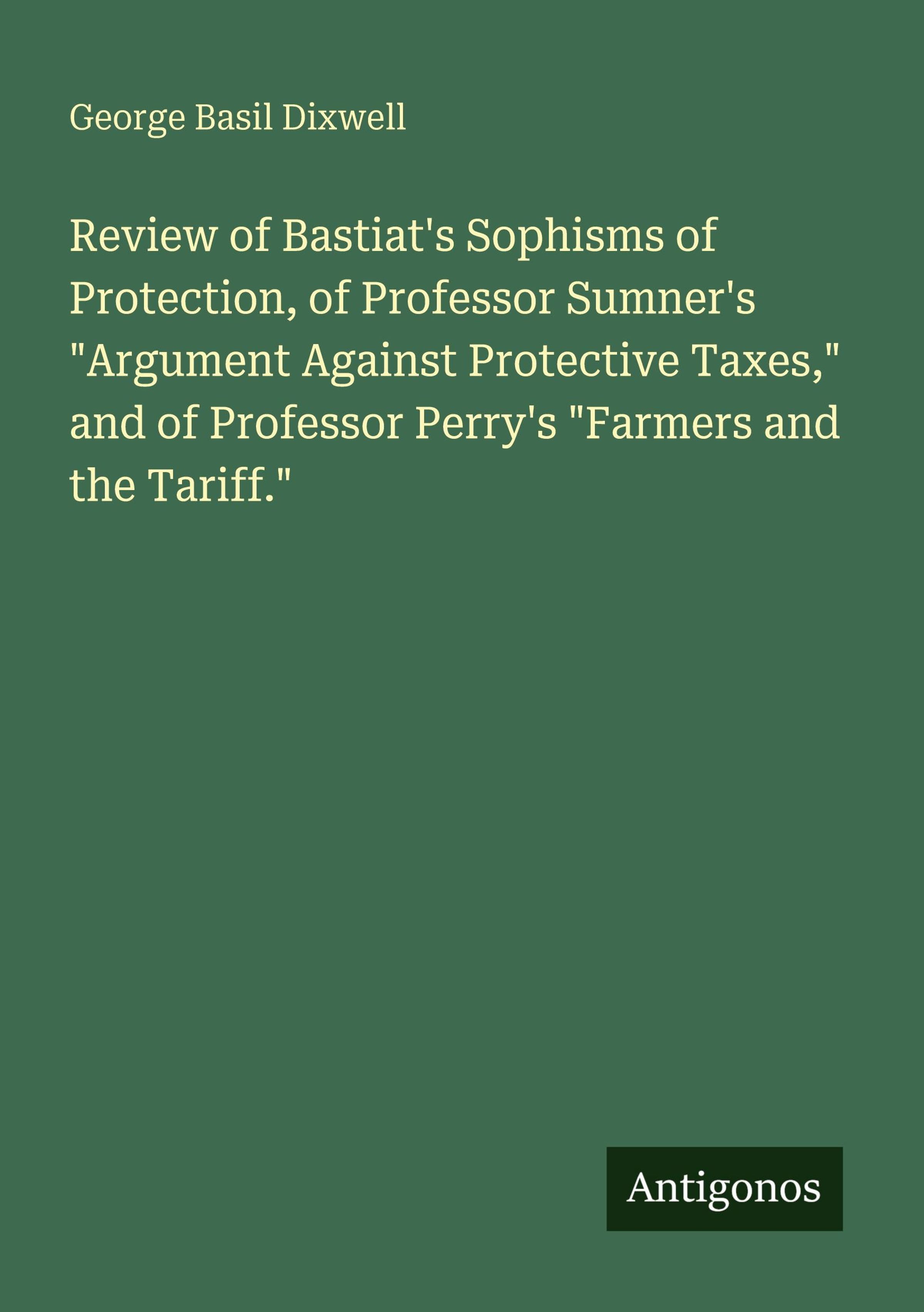 Review of Bastiat's Sophisms of Protection, of Professor Sumner's "Argument Against Protective Taxes," and of Professor Perry's "Farmers and the Tariff."