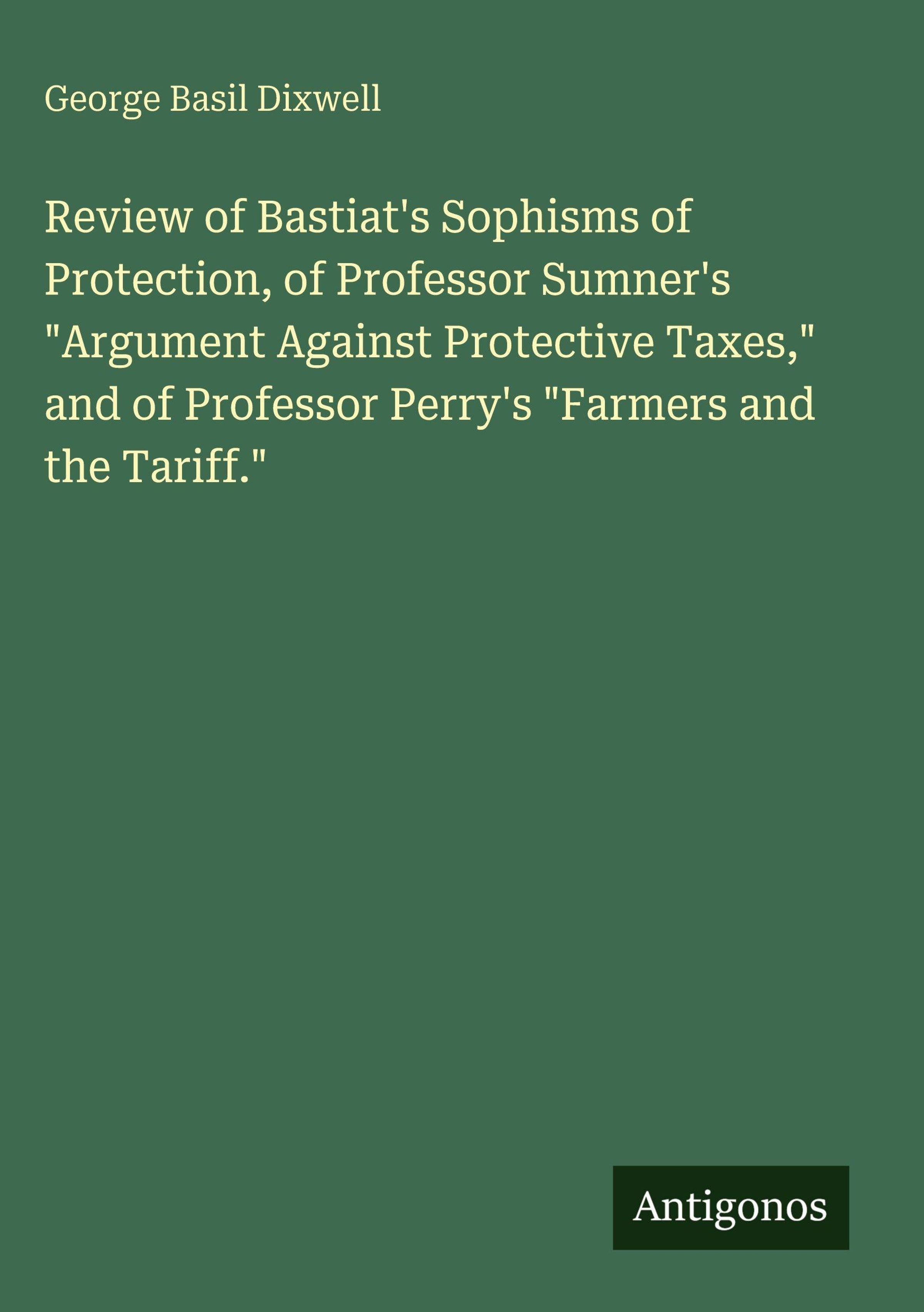 Review of Bastiat's Sophisms of Protection, of Professor Sumner's "Argument Against Protective Taxes," and of Professor Perry's "Farmers and the Tariff."