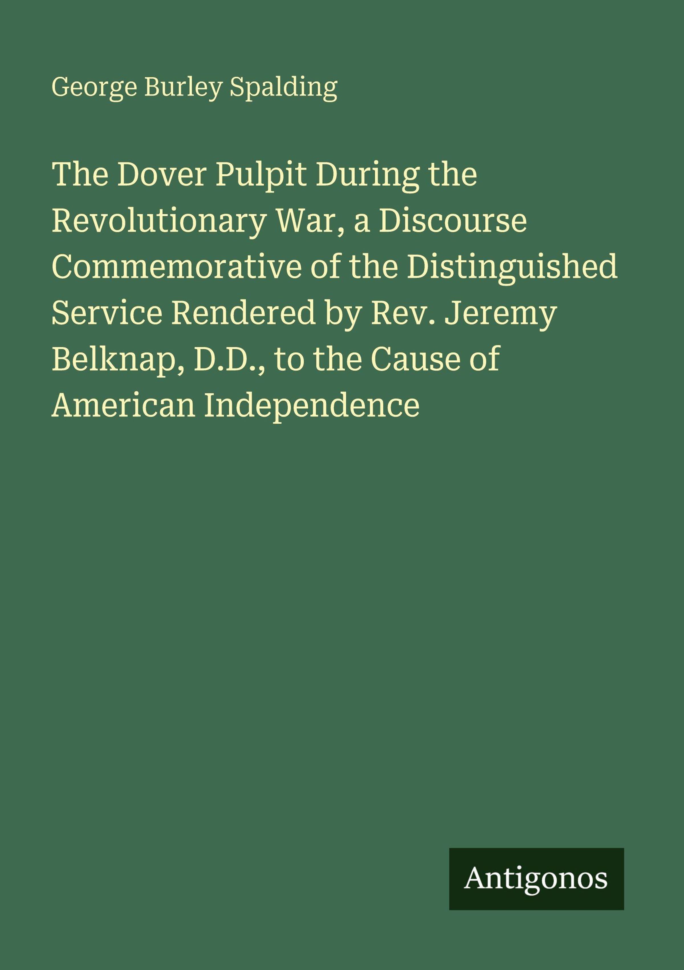 The Dover Pulpit During the Revolutionary War, a Discourse Commemorative of the Distinguished Service Rendered by Rev. Jeremy Belknap, D.D., to the Cause of American Independence