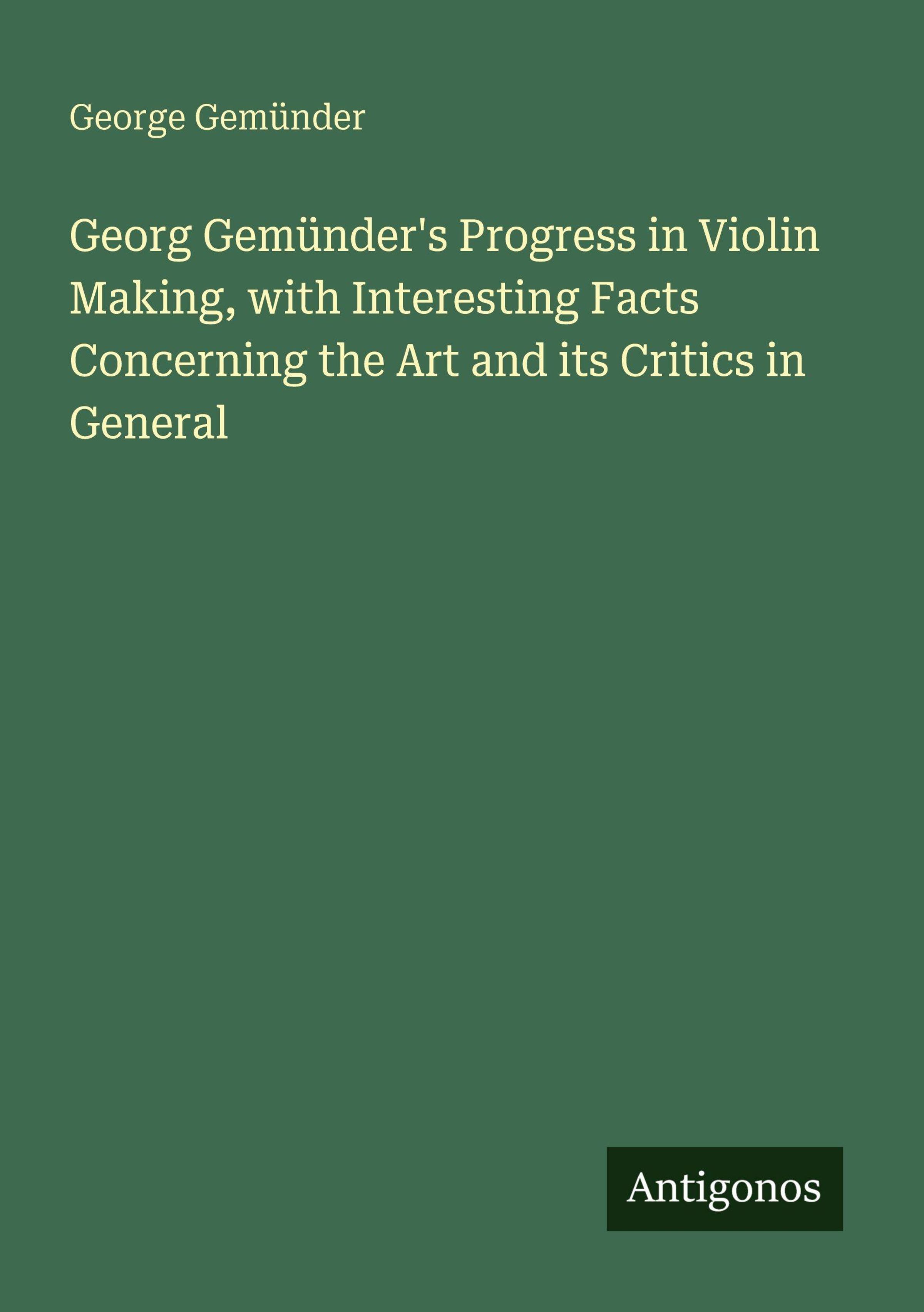 Weitere Ausgaben von Georg Gemünder's Progress in Violin Making, with Interesting Facts Concerning the Art and its Critics in General |