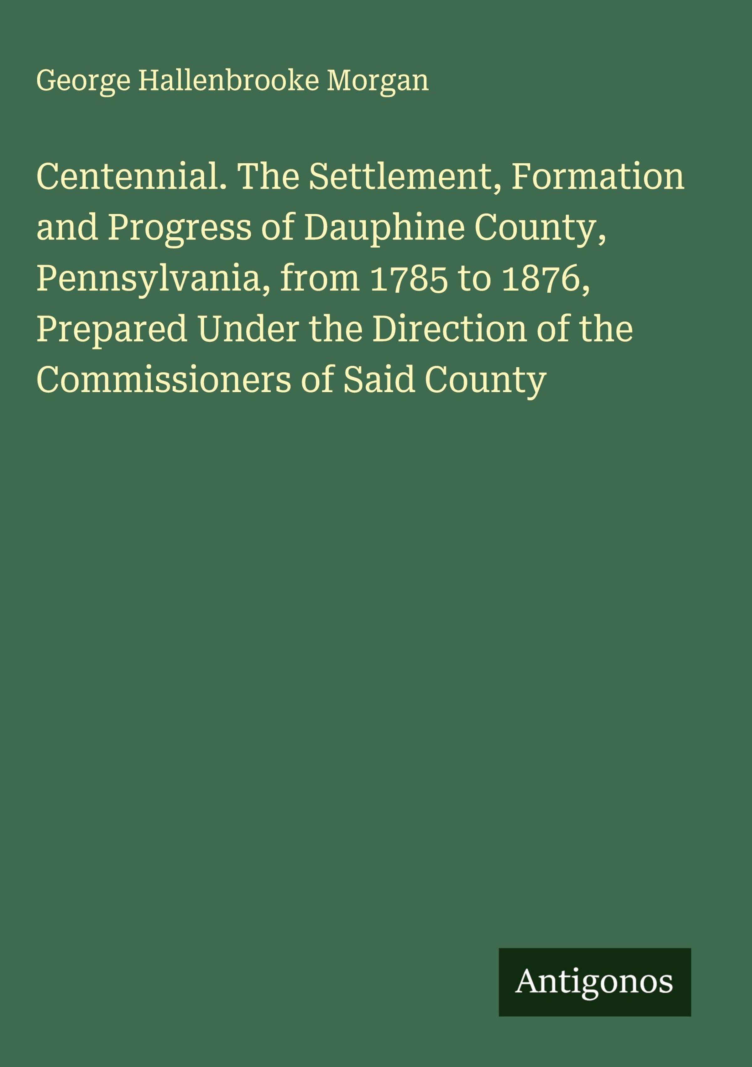 George Hallenbrooke Morgan: Centennial. The Settlement, Formation and Progress of Dauphine County, Pennsylvania,..., Gebunden