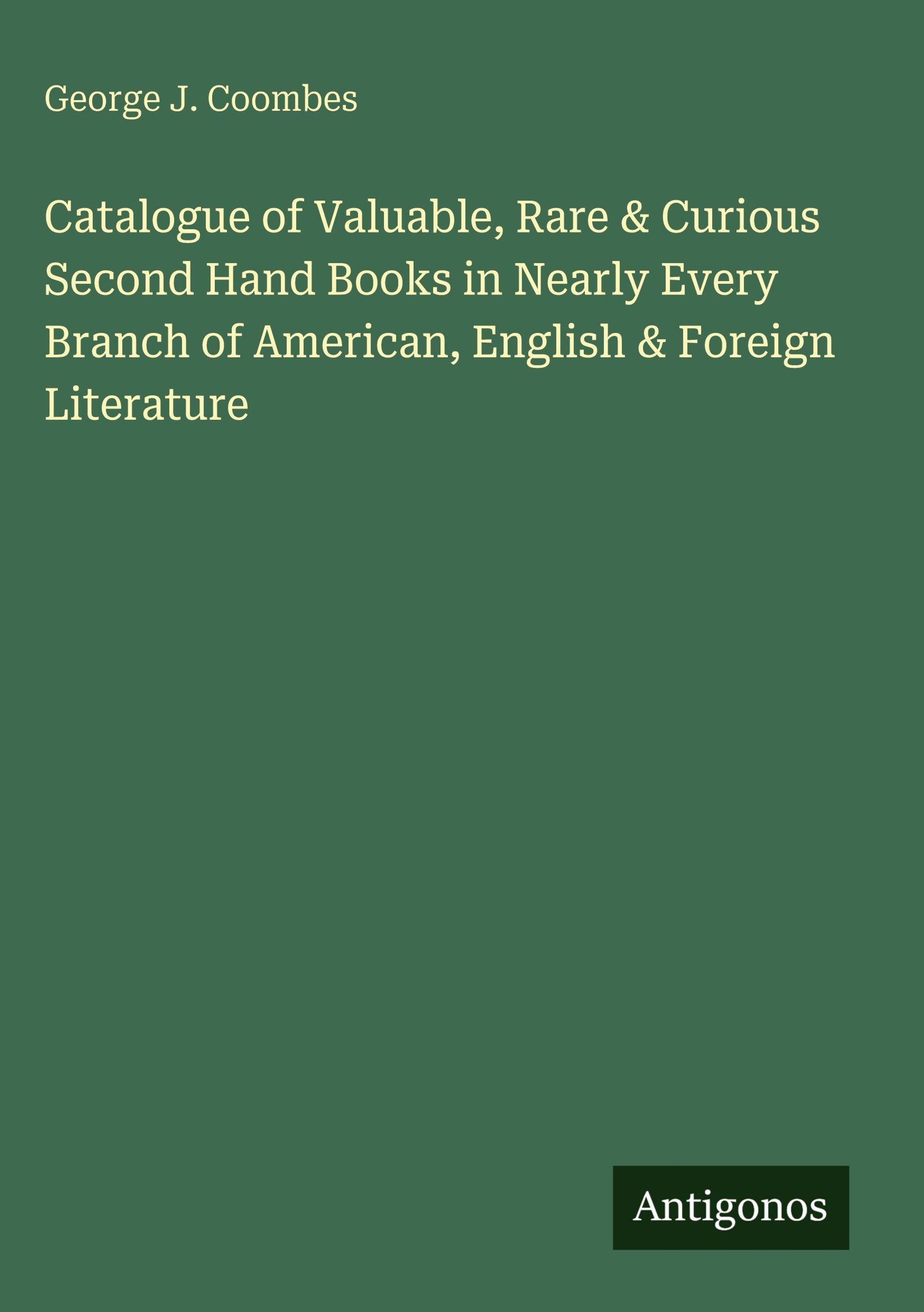 George J. Coombes: Catalogue of Valuable, Rare & Curious Second Hand Books in Nearly Every Branch of American,..., Gebunden
