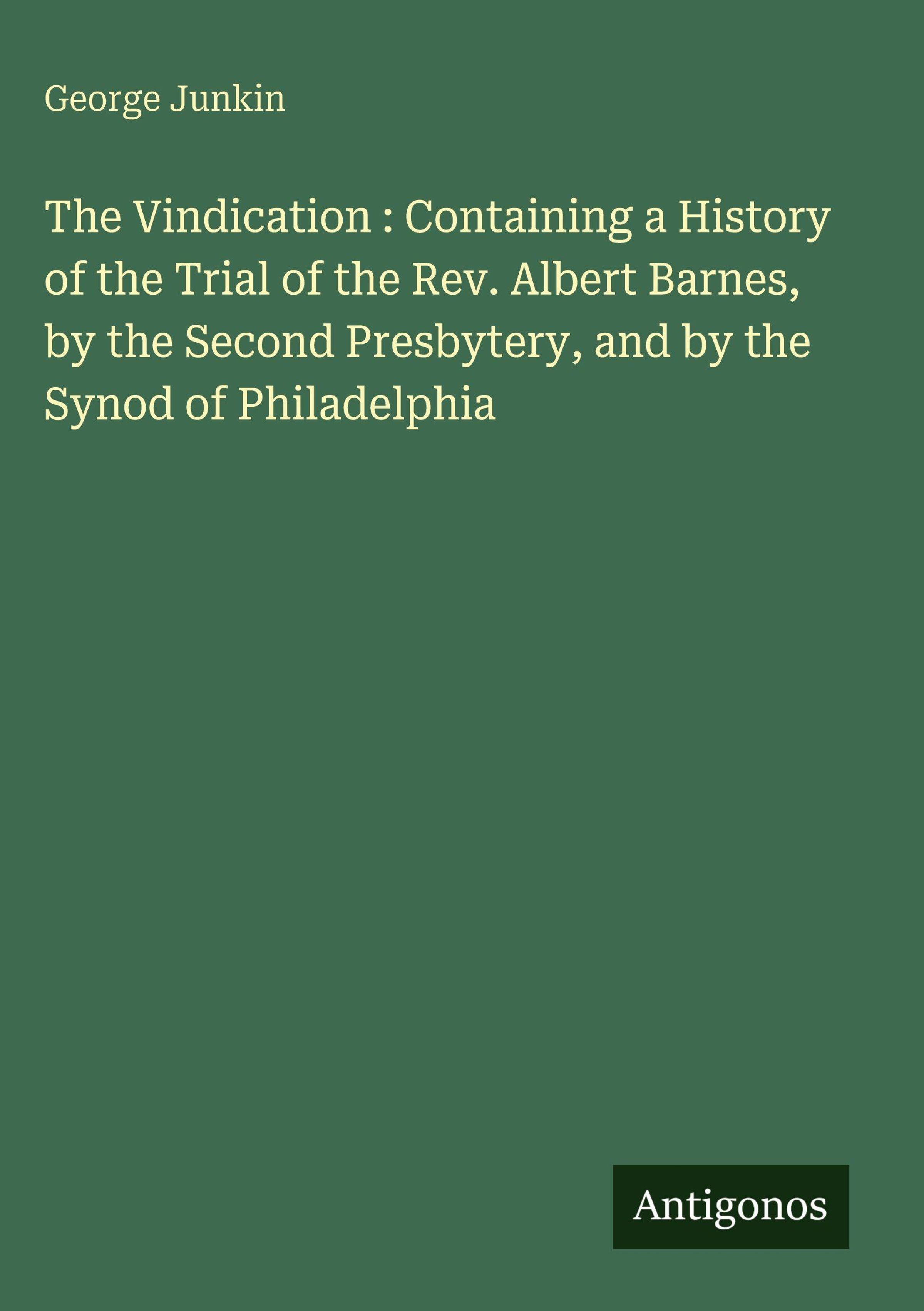 George Junkin: The Vindication : Containing a History of the Trial of the Rev. Albert Barnes, by the Second..., Gebunden