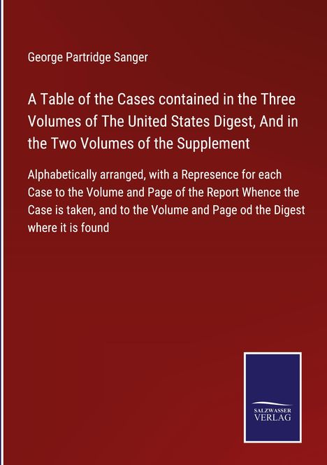 George Partridge Sanger: A Table of the Cases contained in the Three Volumes of The United States Digest, And in..., Gebunden