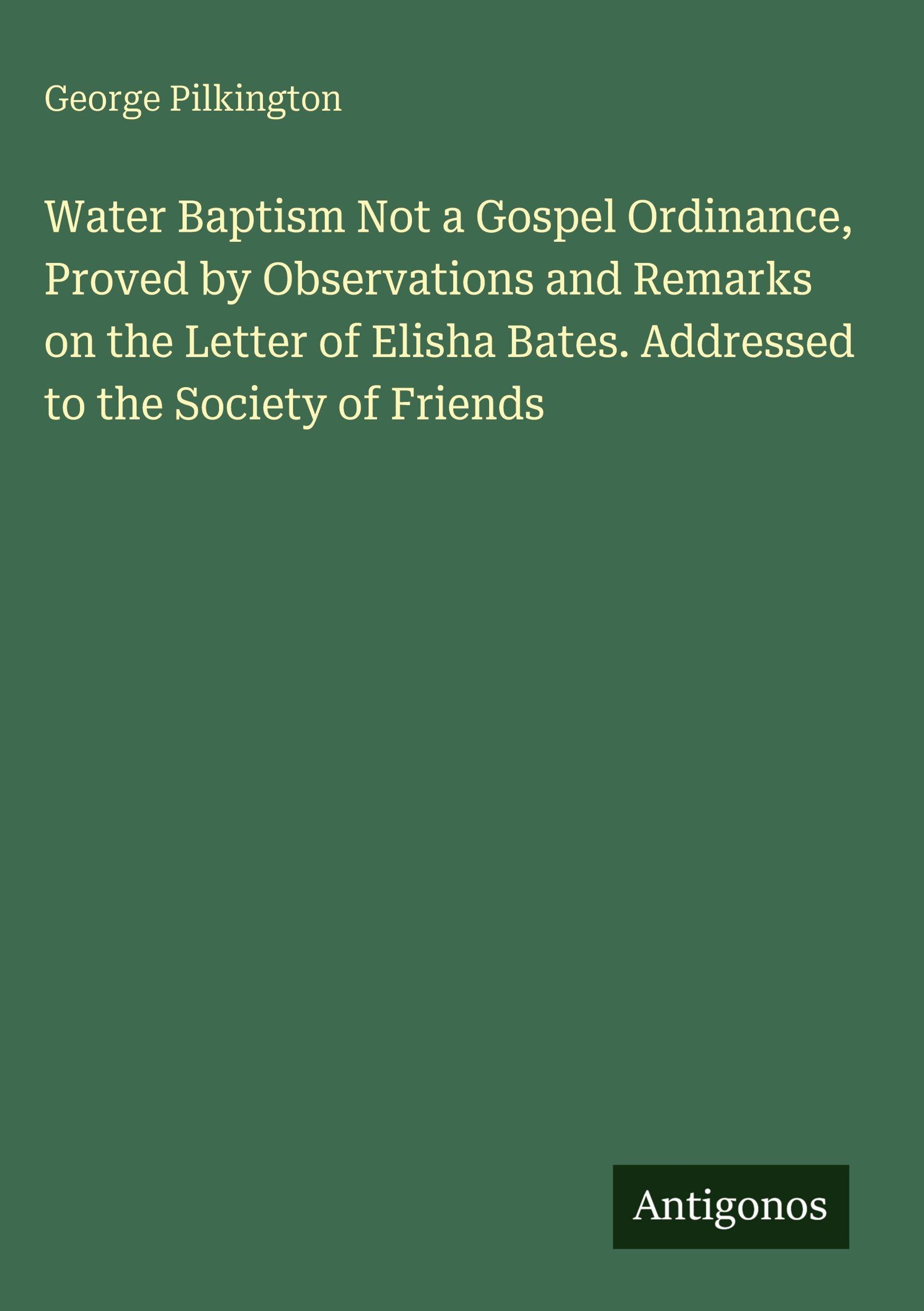 Water Baptism Not a Gospel Ordinance, Proved by Observations and Remarks on the Letter of Elisha Bates. Addressed to the Society of Friends