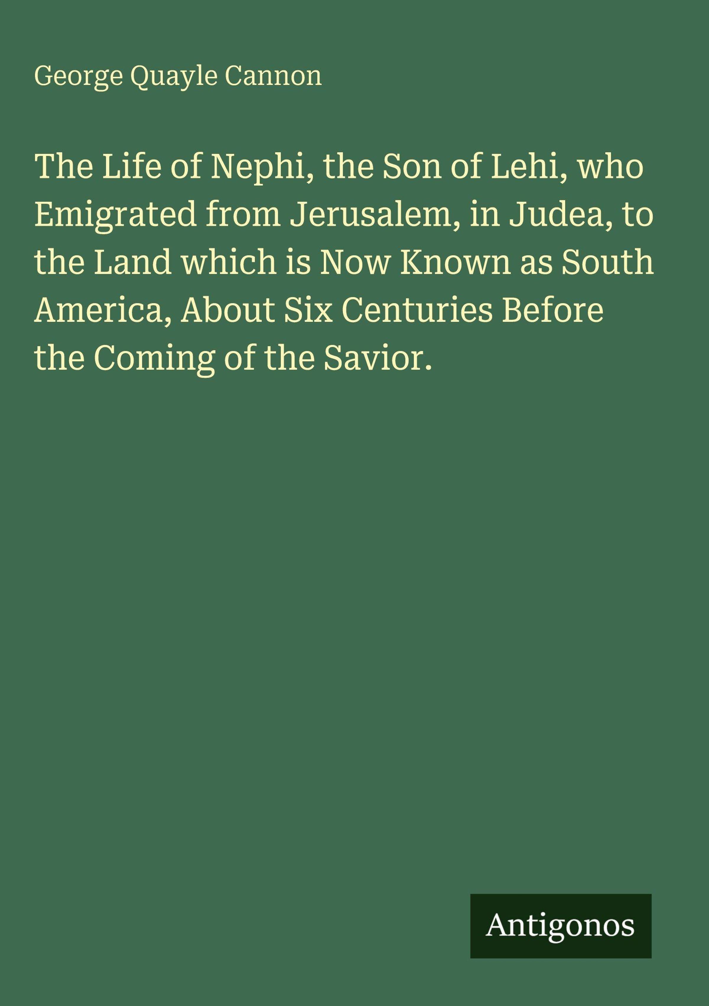 The Life of Nephi, the Son of Lehi, who Emigrated from Jerusalem, in Judea, to the Land which is Now Known as South America, About Six Centuries Before the Coming of the Savior.