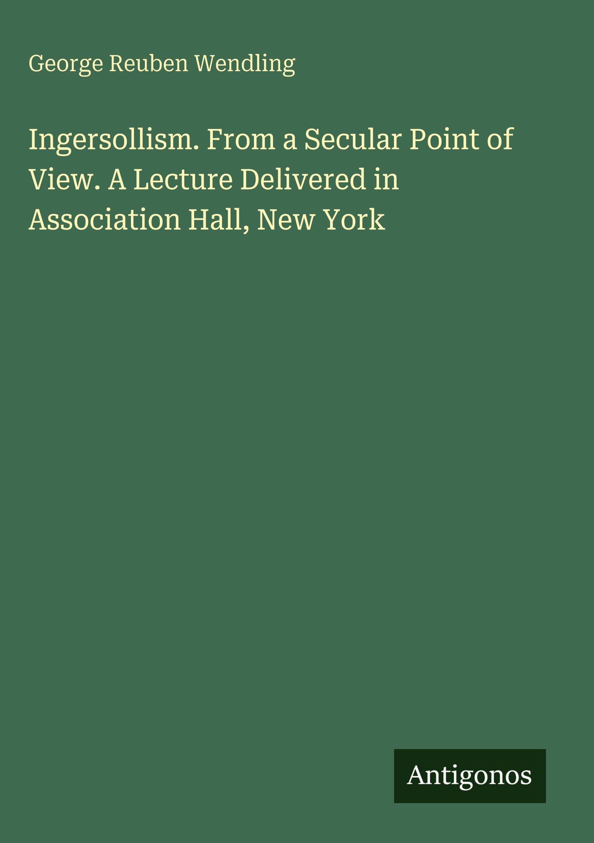George Reuben Wendling: Ingersollism. From a Secular Point of View. A Lecture Delivered in Association Hall, New..., Gebunden