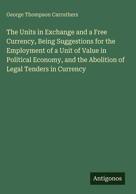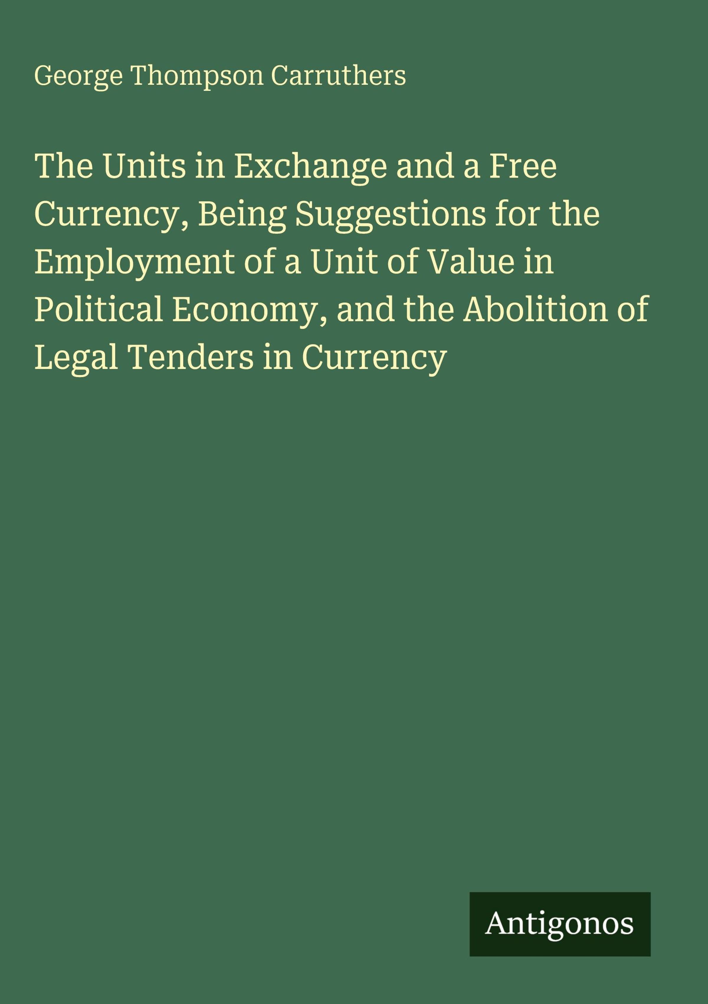 George Thompson Carruthers: The Units in Exchange and a Free Currency, Being Suggestions for the Employment of a..., Gebunden