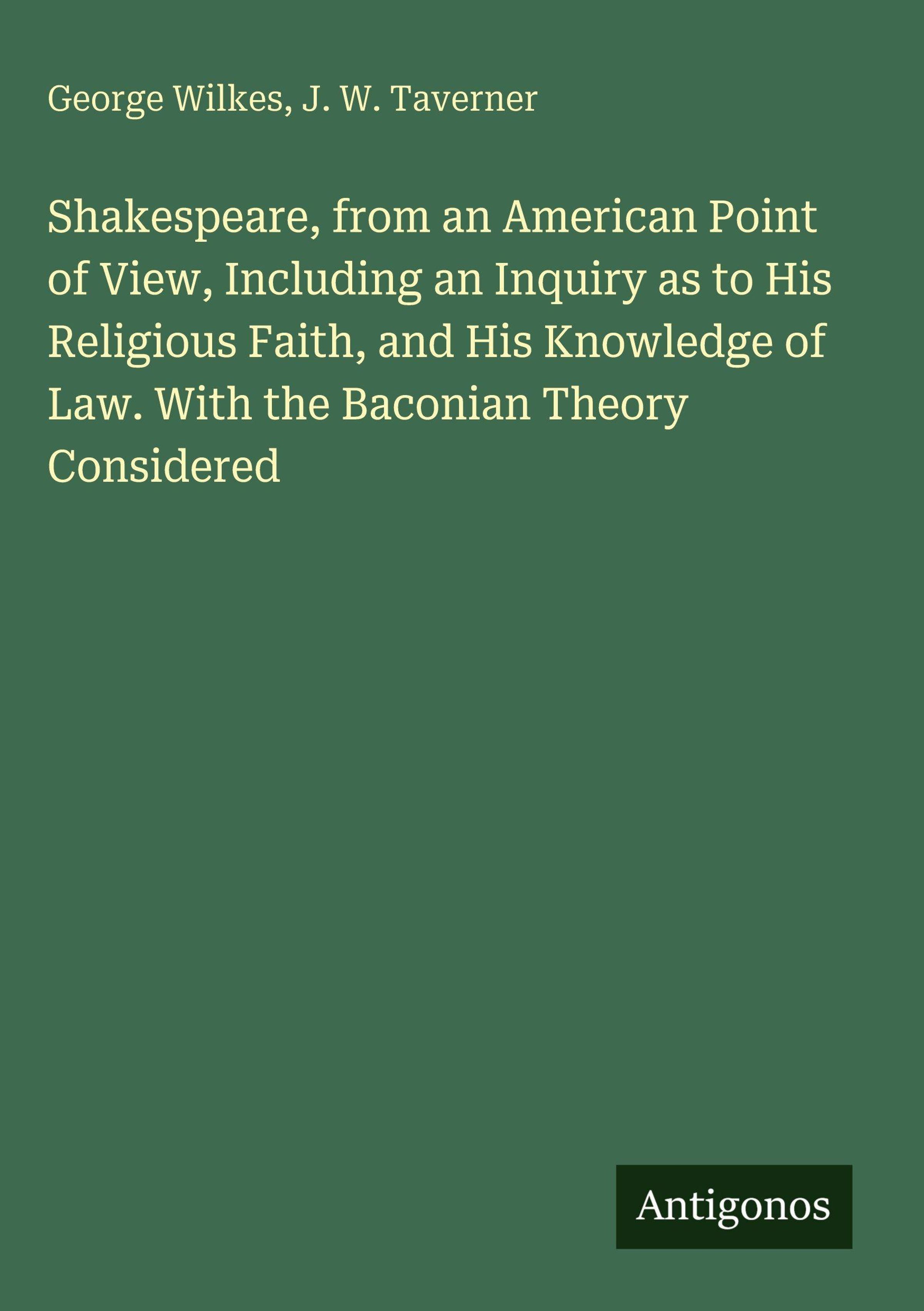 Shakespeare, from an American Point of View, Including an Inquiry as to His Religious Faith, and His Knowledge of Law. With the Baconian Theory Considered