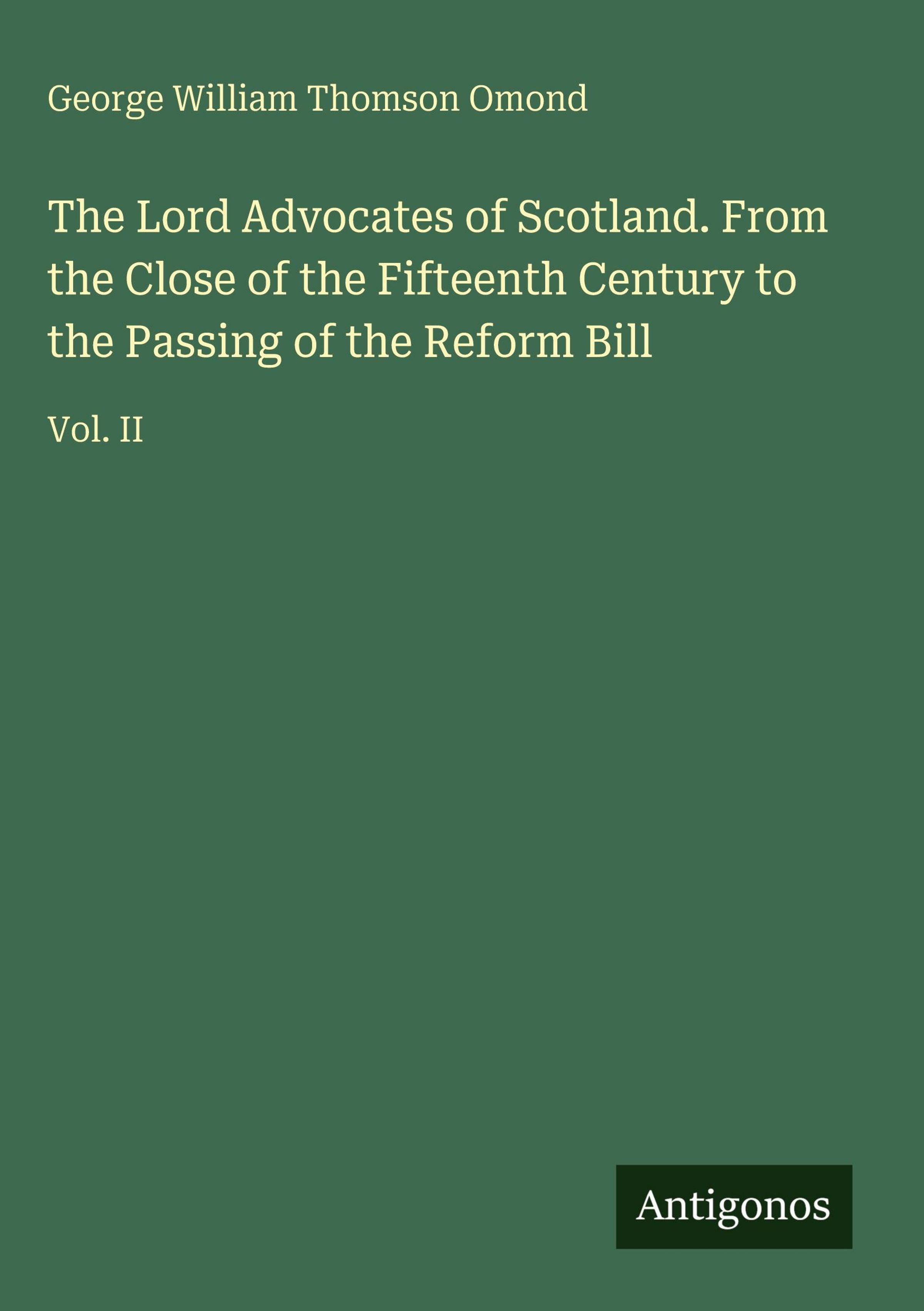 George William Thomson Omond: The Lord Advocates of Scotland. From the Close of the Fifteenth Century to the..., Gebunden