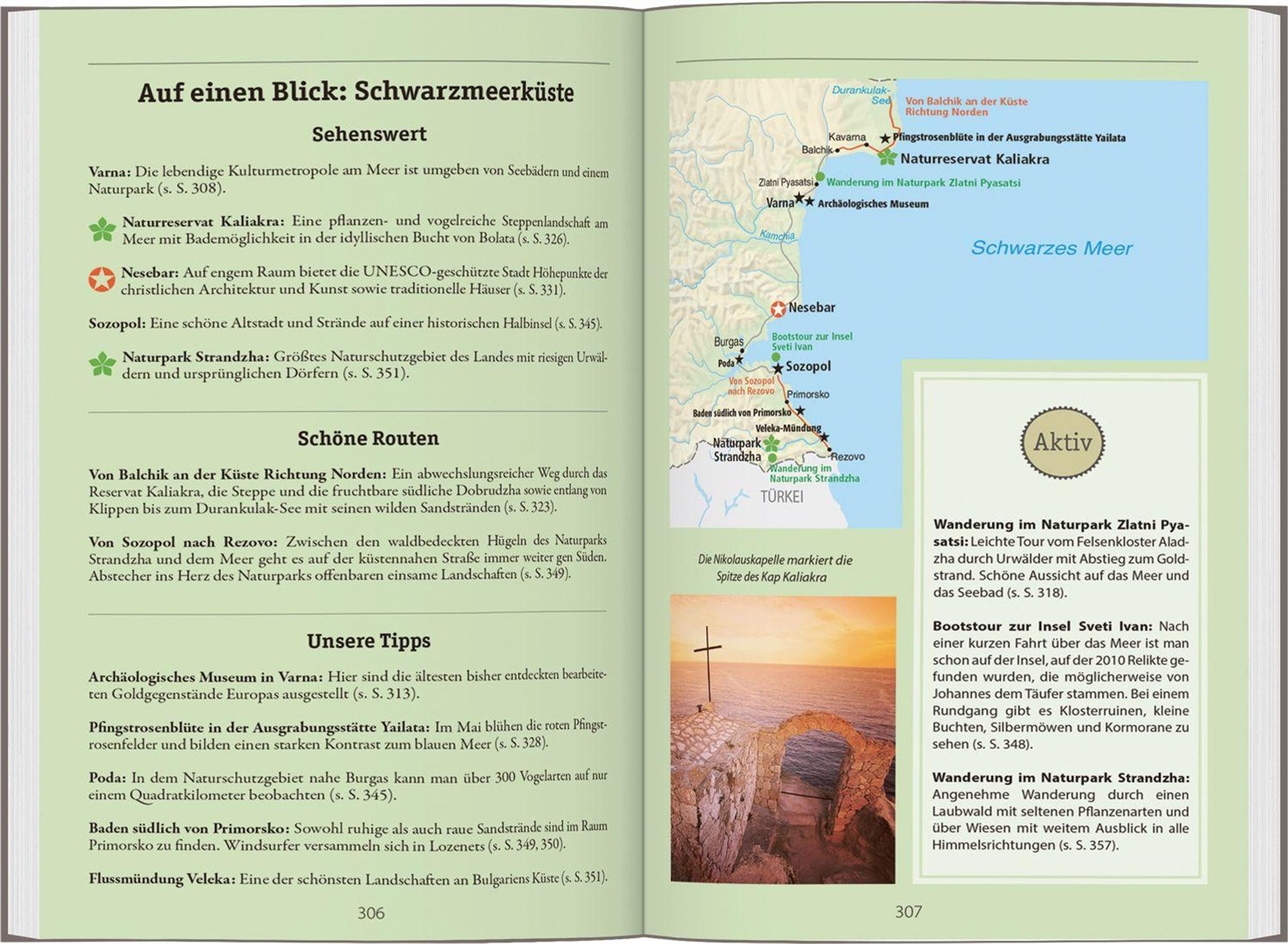 Das Reise-Handbuch enthält alles, was Sie für einen abwechslungsreichen Trip nach Bulgarien brauchen. Von der Metropole Sofia bis in die einsame Bergwelt, vom Donautal bis zur Schwarzmeerküste werden alle Regionen und Städte beschrieben. Eingestreute Themenseiten liefern außergewöhnliche Geschichten und Fakten, die nicht jeder kennt. Die Empfehlungen für Aktivtouren führen Sie zu einmaligen Naturerlebnissen und architektonischen Meisterwerken. Ob Sie zu den blauen Seen im Pirin-Gebirge wandern, mit dem Kajak die Donau hinunterpaddeln oder auf dem Mountainbike die Rhodopen erkunden - mit dem DUMONT Reise-Handbuch Bulgarien schaffen Sie sich Urlaubserinnerungen, die nicht so rasch verblassen!