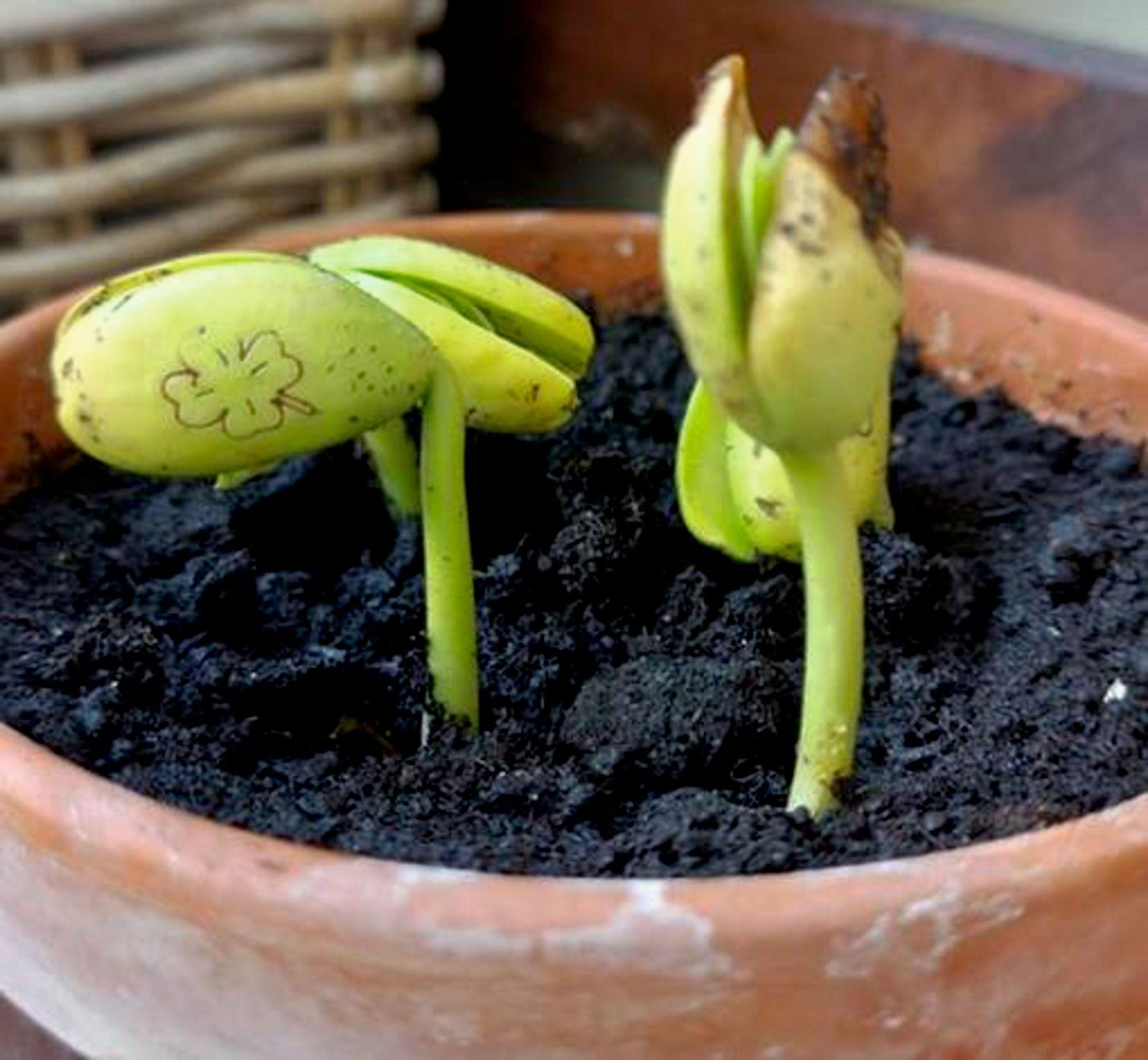 Beim Keimen zeigt die Pflanze ein eingeprägtes Symbol oder Wort