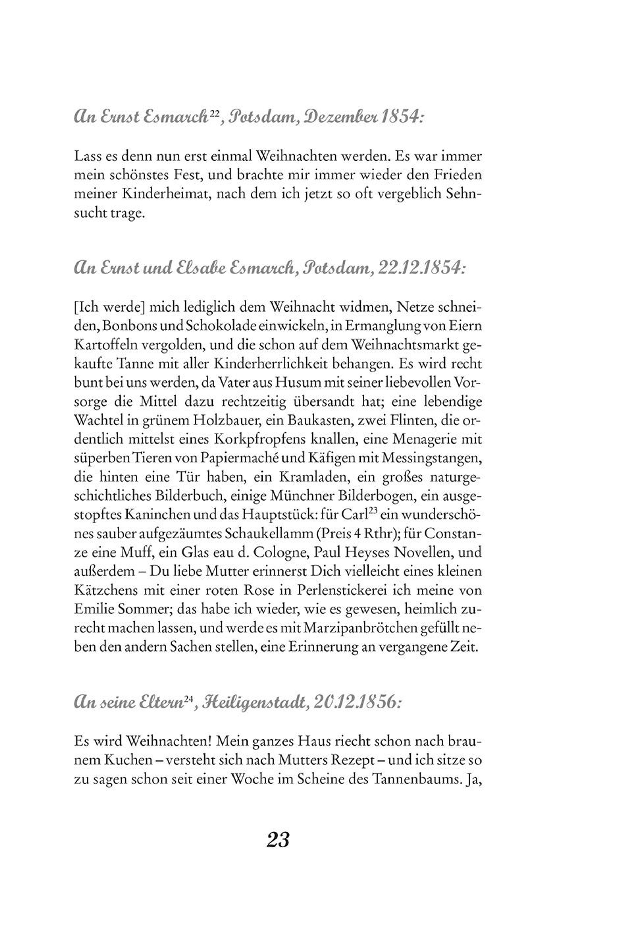 Das Weihnachtsfest nimmt im Leben Theodor Storms einen bedeutsamen Platz ein. Es ist das wichtigste der Jahresfeste, wovon viele Aussagen des Dichters in Briefen an die Familie und an Freunde zeugen. Auch in der Dichtung Storms hat das Weihnachtsfest seine vielgestaltigen Spuren hinterlassen: Das bekannteste Weihnachtsgedicht überhaupt ist wohl "Knecht Ruprecht". Theodor Storms sämtliche Weihnachtserzählungen und Weihnachtsgedichte sind in diesem Band ebenso enthalten wie viele Briefe, in denen er dem heutigen Leser einen beinahe intimen Einblick in sein Weihnachten, die Vorbereitungen, den Baumschmuck und die Feier selbst gewährt. Zahlreiche, überwiegend farbige Abbildungen zeigen den Christbaumschmuck der Stormzeit und vermitteln so ein anschauliches Bild der Weihnachtsfeste der bürgerlichen Familie des 19. Jahrhunderts.