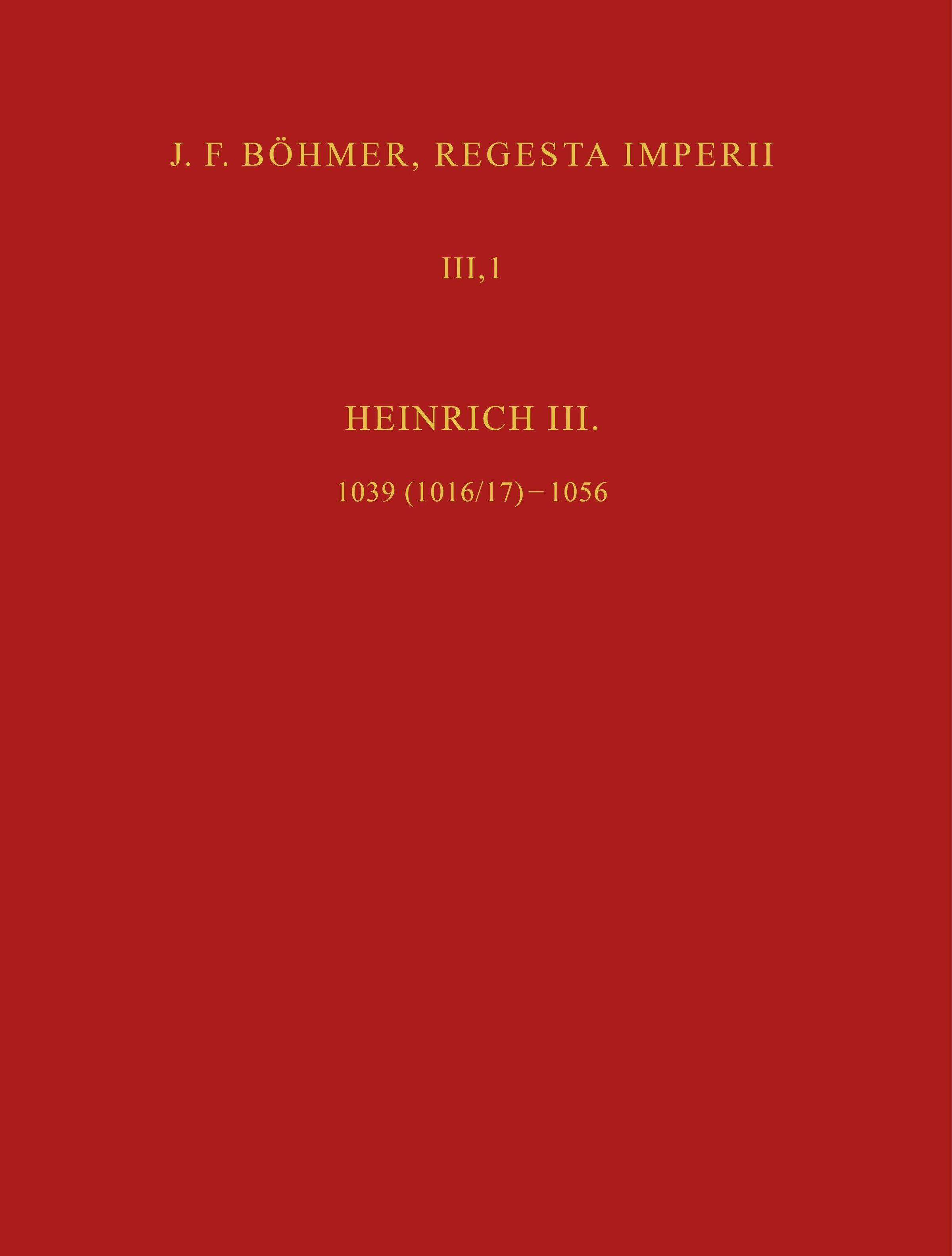 • III. Salisches Haus: 1024-1125. 1. Teil: 1024-1056. 2. Abteilung: Die Regesten des Kaiserreichs unter Heinrich III. 1039-1056, Lieferung 1