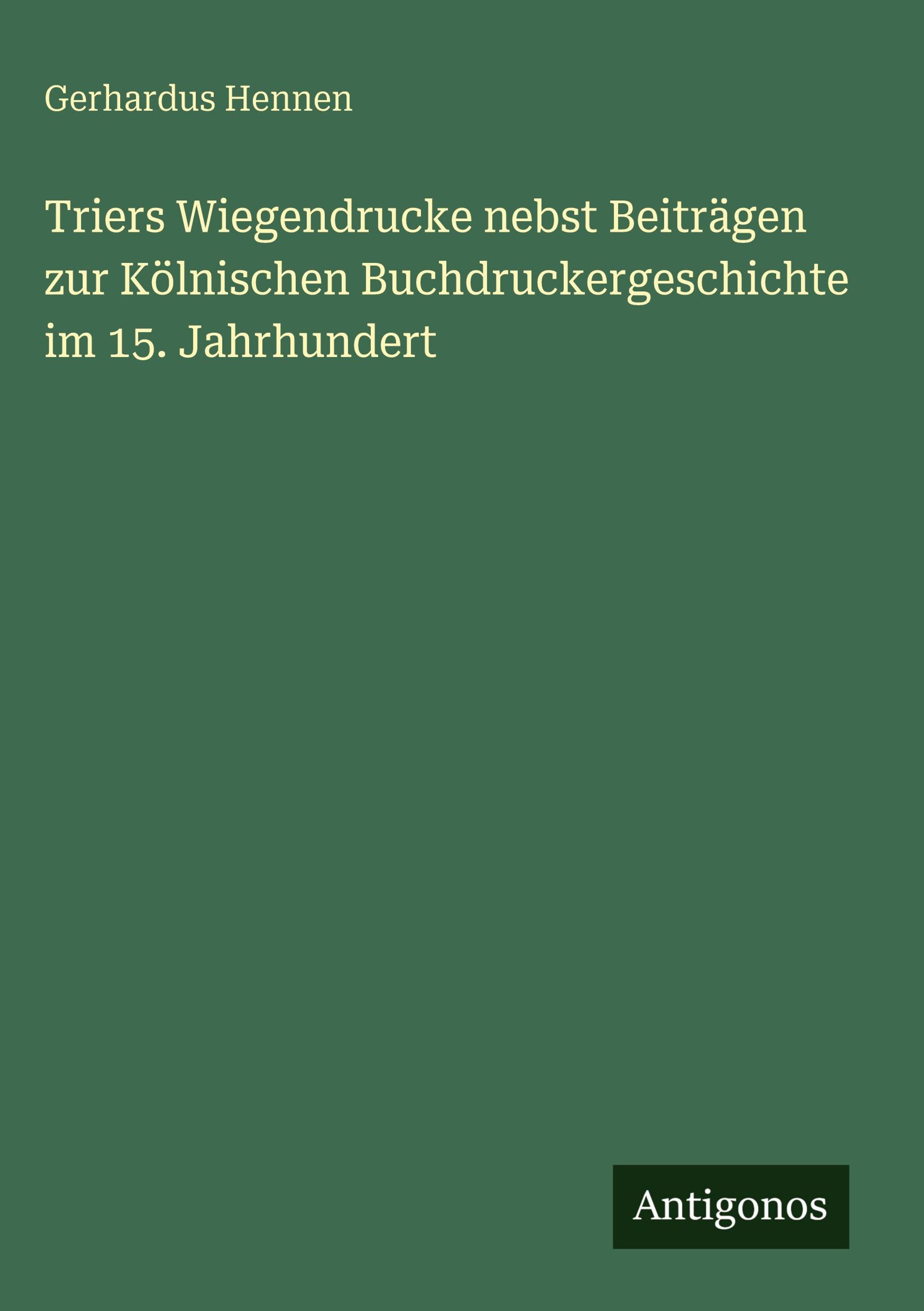 Gerhardus Hennen: Triers Wiegendrucke nebst Beiträgen zur Kölnischen Buchdruckergeschichte im 15. Jahrhundert, Gebunden