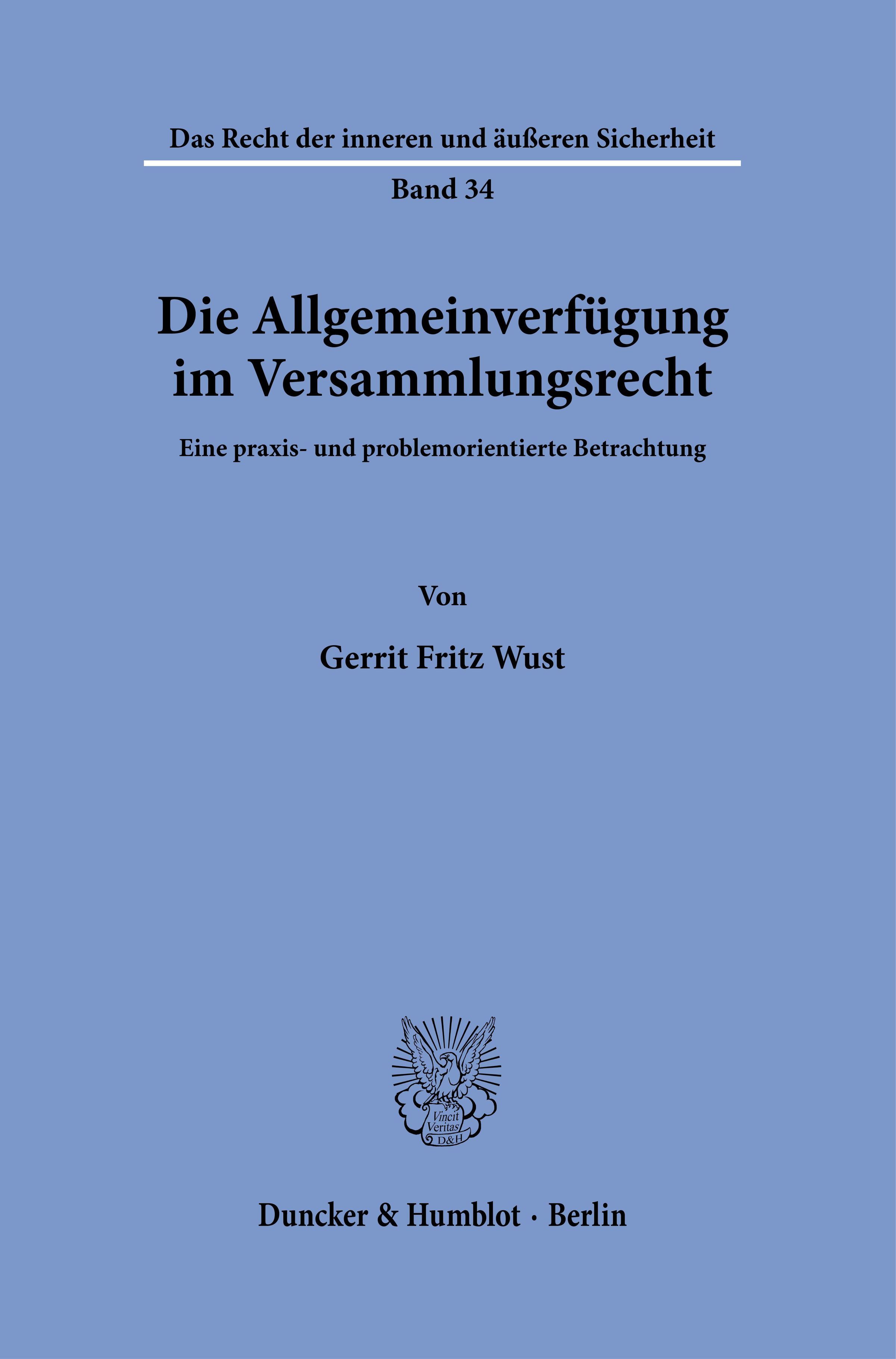 'The General Order in Assembly Law - A Problem- and Practice-Oriented Analysis': Preventive general orders in assembly law often cover an indeterminate number of potentially future assemblies and have extensive temporal and spatial effects. The Federal Constitutional Court (BVerfG) has therefore expressed doubts as to whether such measures can still be reconciled with the significance of the freedom of assembly. This study examines the practical challenges arising in this context and provides guidance for the legally sound application of general orders under assembly law.