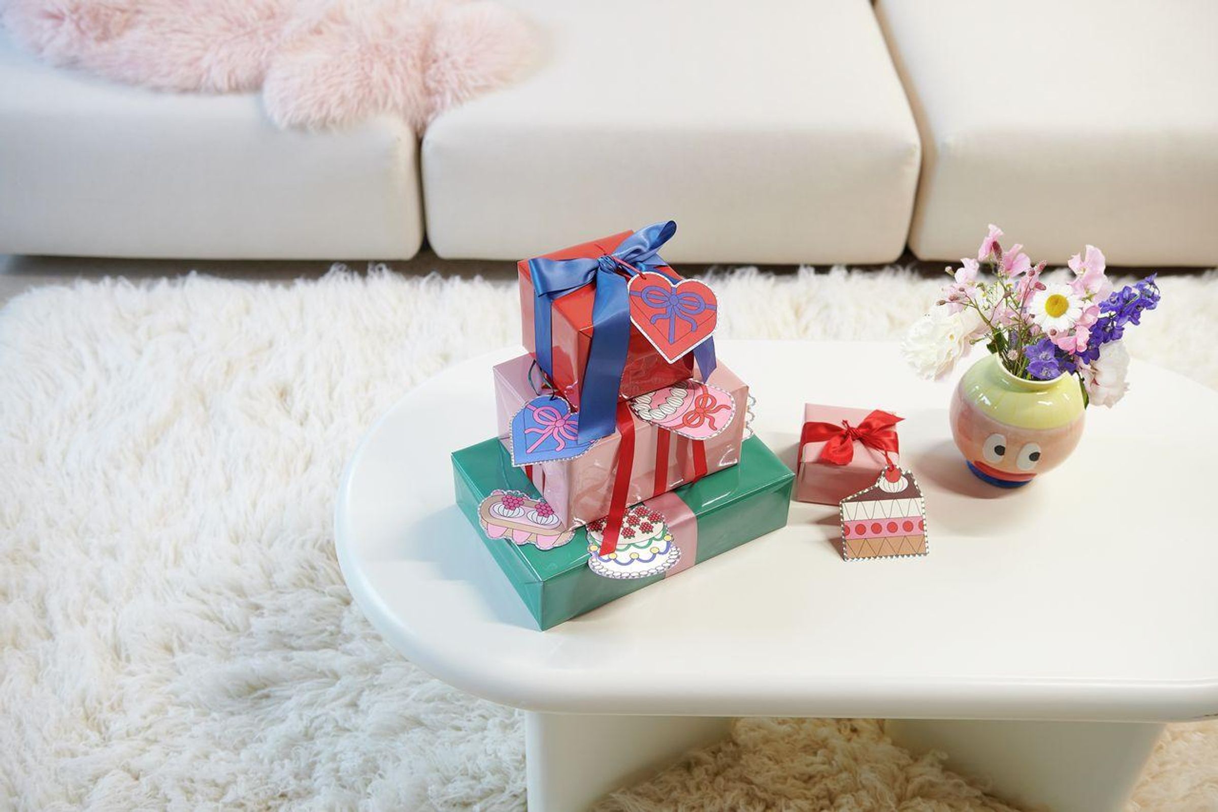 Die Geschenkanhänger in acht unterschiedlichen Designs bringen eine dekorative Ergänzung zu verpackten Präsenten. Jedes Motiv ist mit einem Satinband ausgestattet, das beim Befestigen einen farbigen Akzent setzt. Die einfarbig rosafarben bedruckten Rückseiten schaffen eine Fläche, auf der sich kurze Nachrichten klar und gut lesbar notieren lassen.