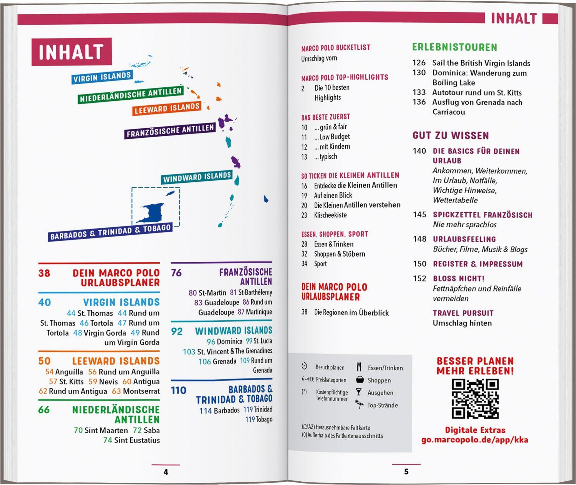 Die Kleinen Antillen stecken voller Möglichkeiten. Das Insellabyrinth der Virgin Islands ist der wahr gewordene Traum aller passionierten Segler, die Leeward Islands locken Badenixen mit feinen Zuckerstränden. Auf den niederländischen und französischen Antillen kannst du Wandern bis zum Abwinken, auf den Windward Islands unter Vulkanen schnorcheln und in Wasserfällen duschen. Die geografischen Außenseiter Barbados und Trinidad & Tobago laden mit einem faszinierenden Kulturmix zum Erkunden ein. Für welche der vielen Inseln du dich auch entscheidest - dein MARCO POLO Reiseführer für die Kleinen Antillen begleitet dich bei jedem deiner Abenteuer!