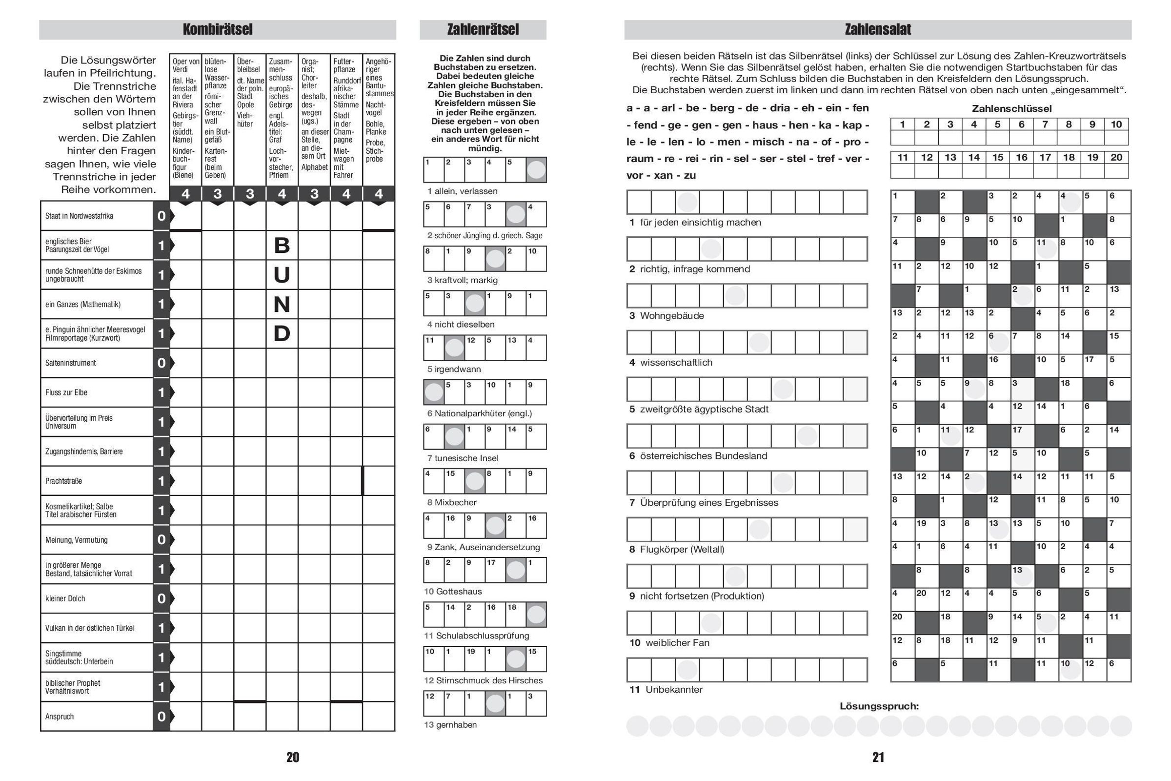 Kreuzworträtsel, Bilderrätsel, Silbenrätsel, Wabenrätsel, Zahlenrätsel und vieles mehr